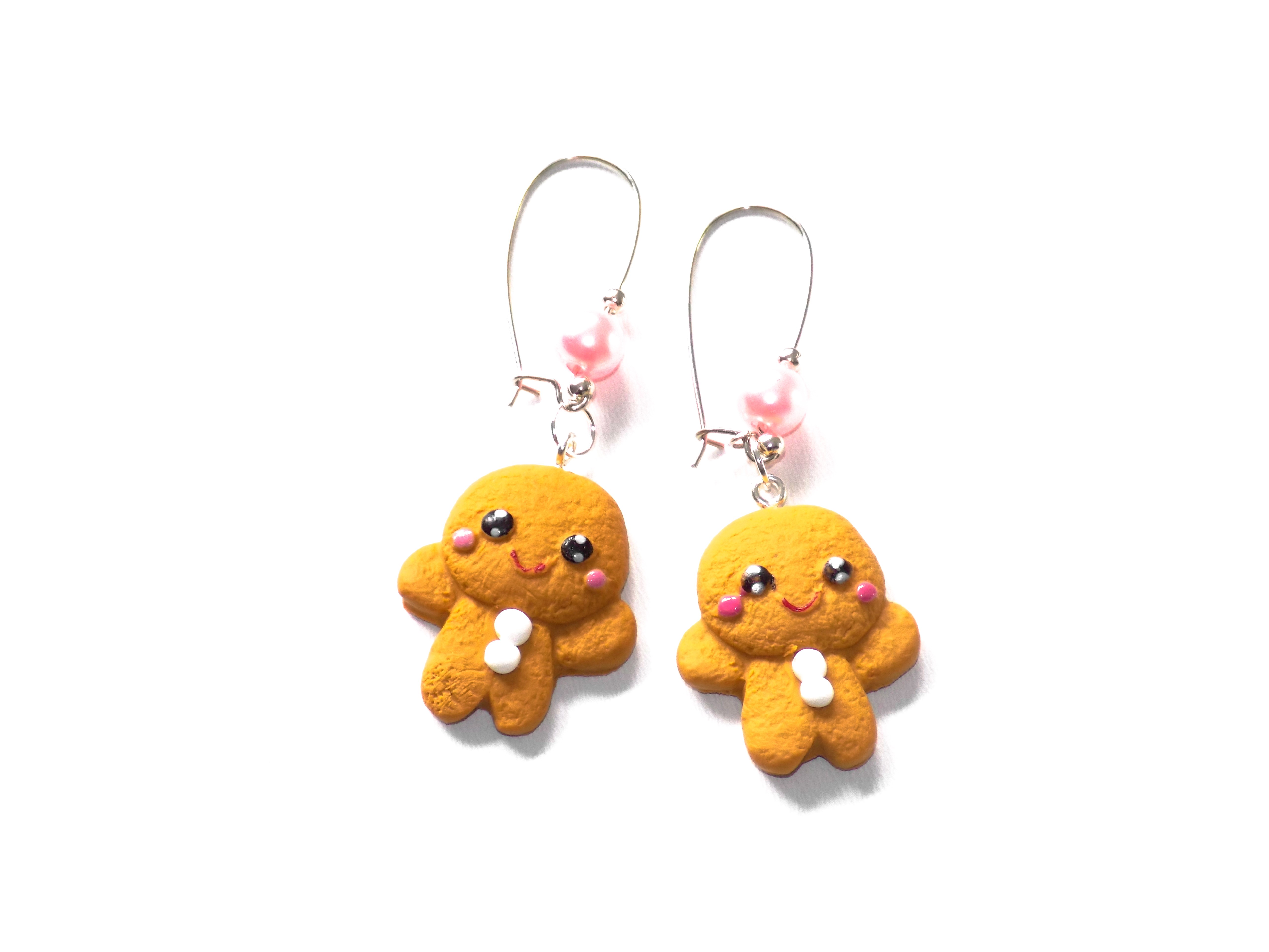 Adorables boucles d'oreilles petits biscuits gingerbread confectionnées en pâte polymère.