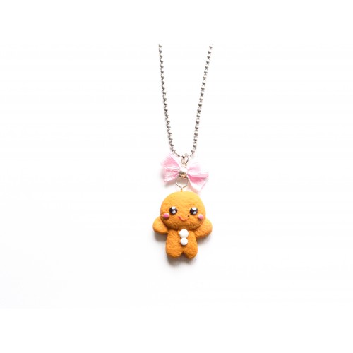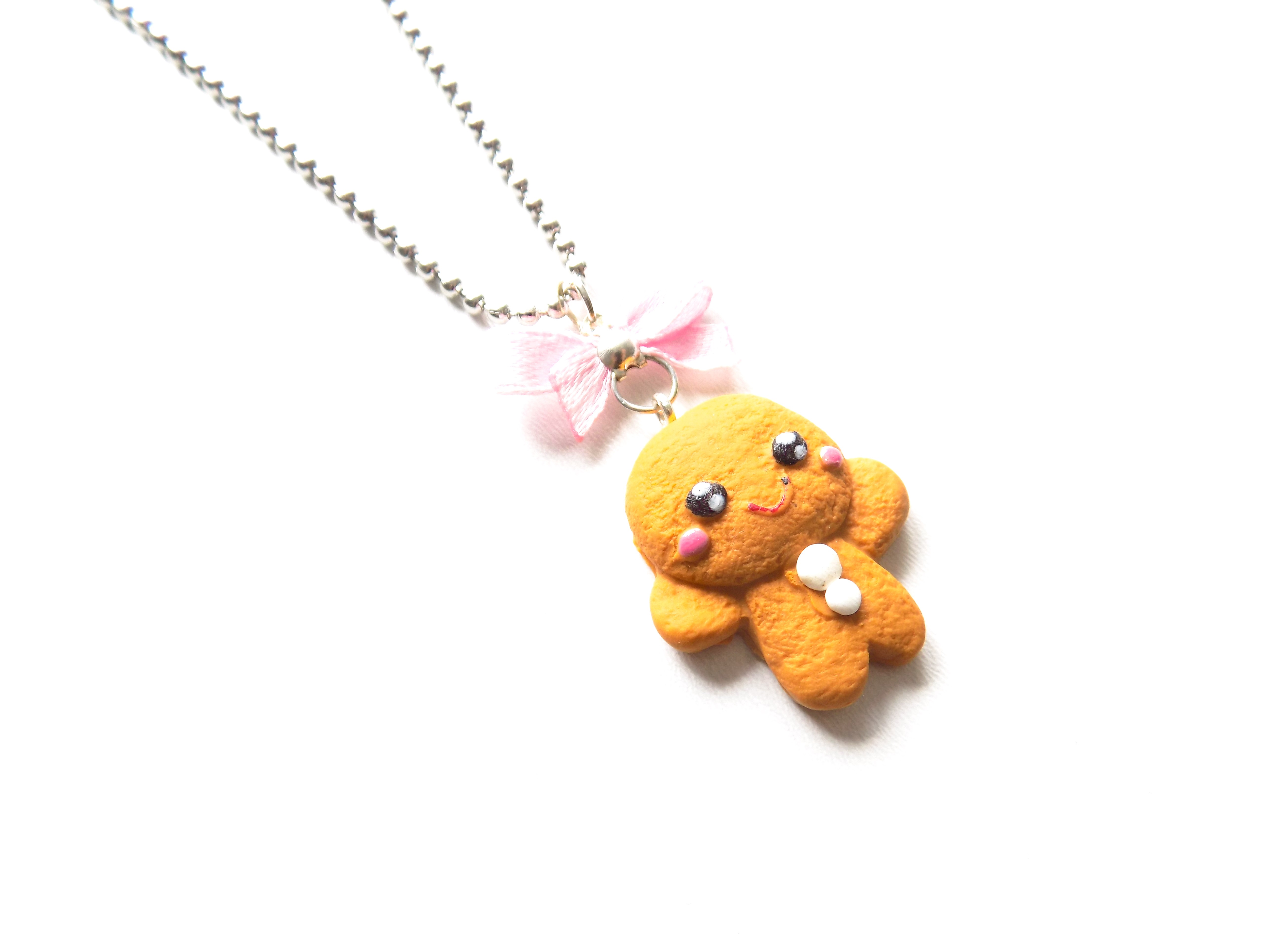 Adorable collier petit biscuit gingerbread confectionné en pâte polymère.