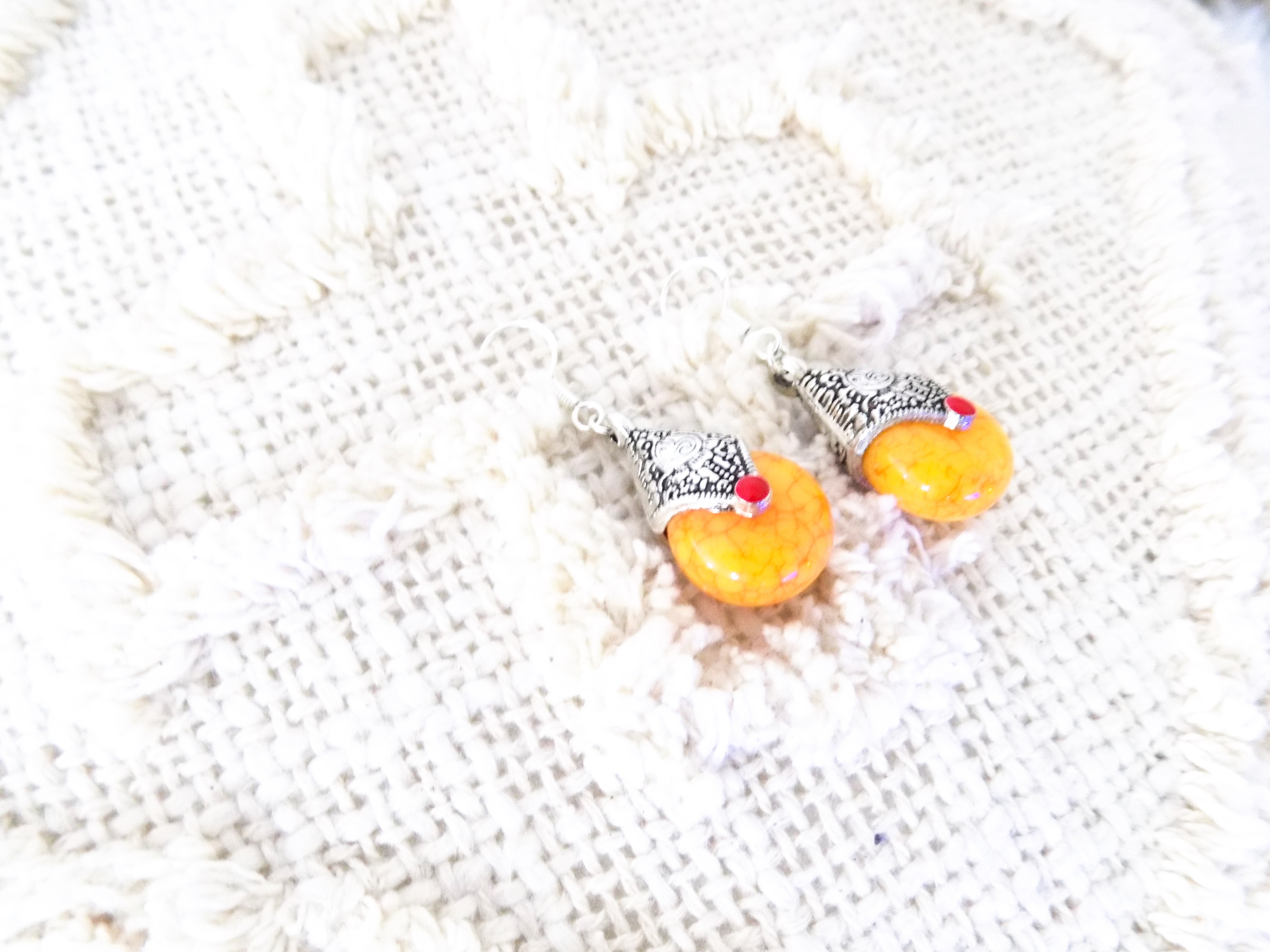 Superbes boucles d'oreilles confectionnées avec des breloques du Népal.
