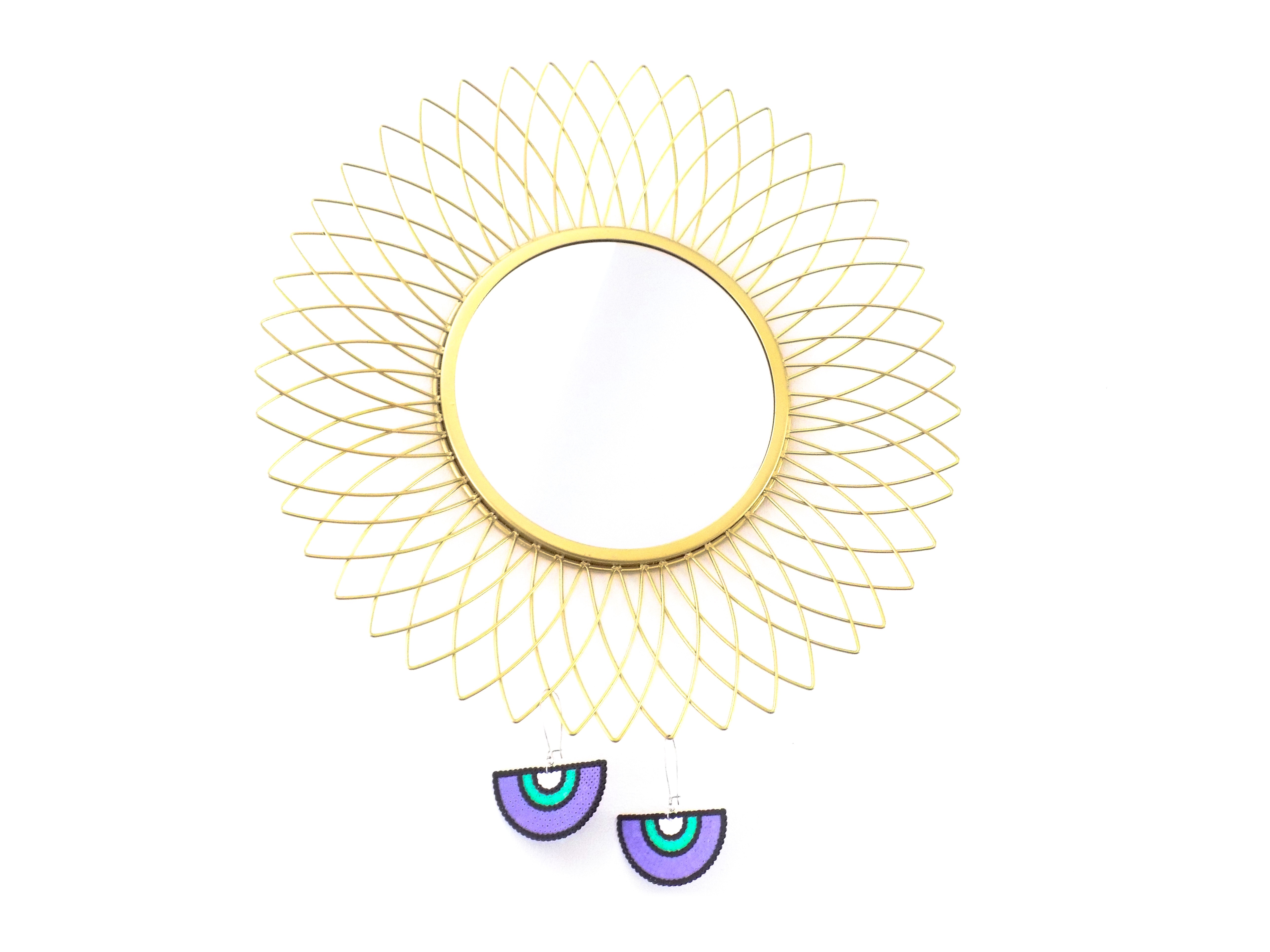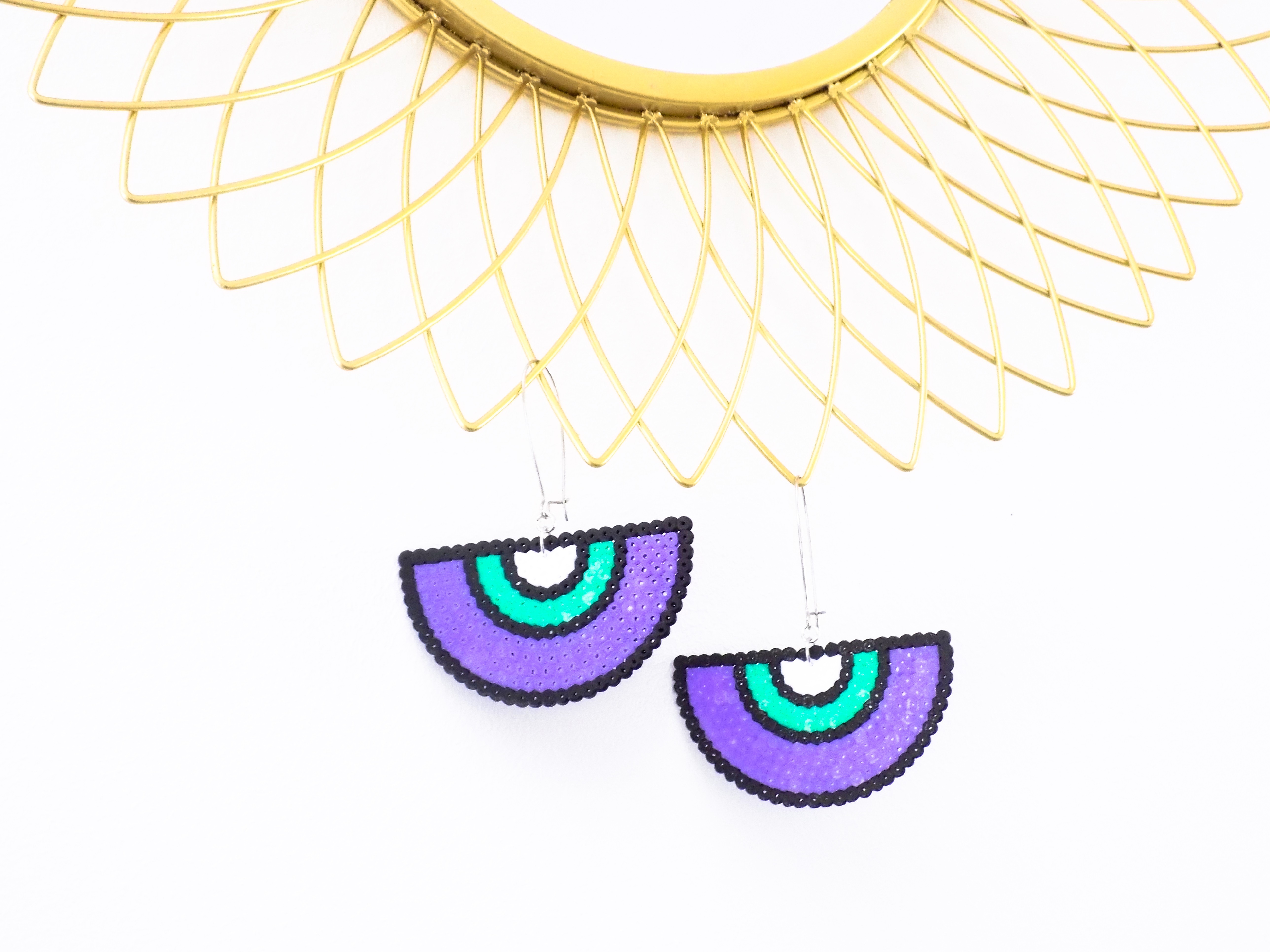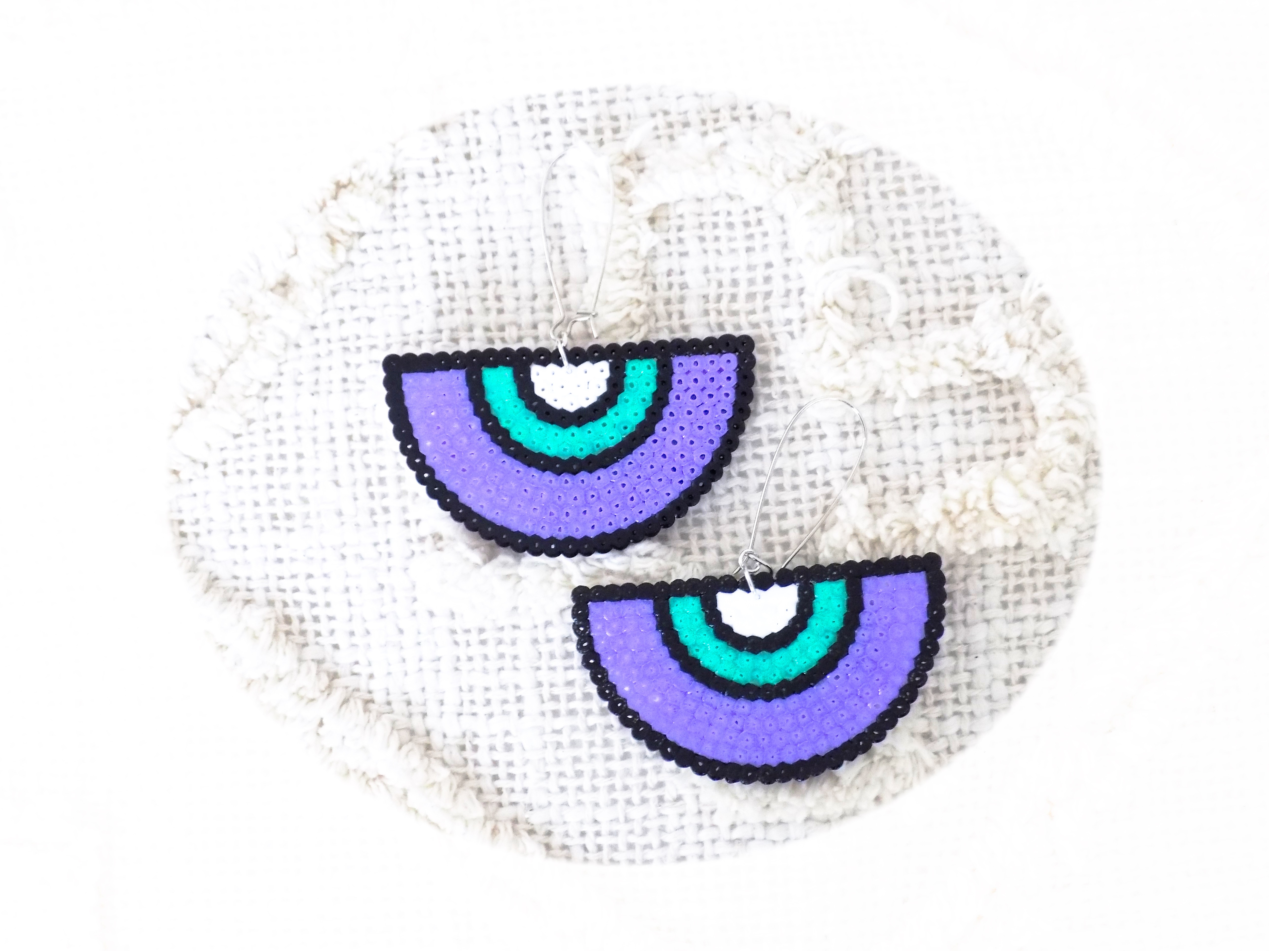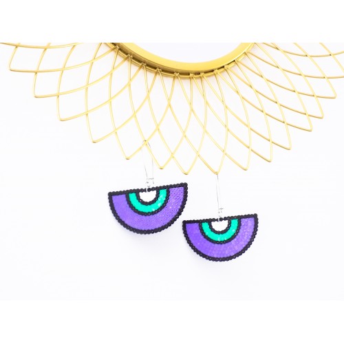 ♡ Shaylia ♡ Boucles d'oreilles, cadeau artisanal, noir, blanc, violet, vert menthe, demi-cercle, cercle, multicolore, argenté, bijou ethnique, géométrique, cadeau femme, pièce unique, fait-main