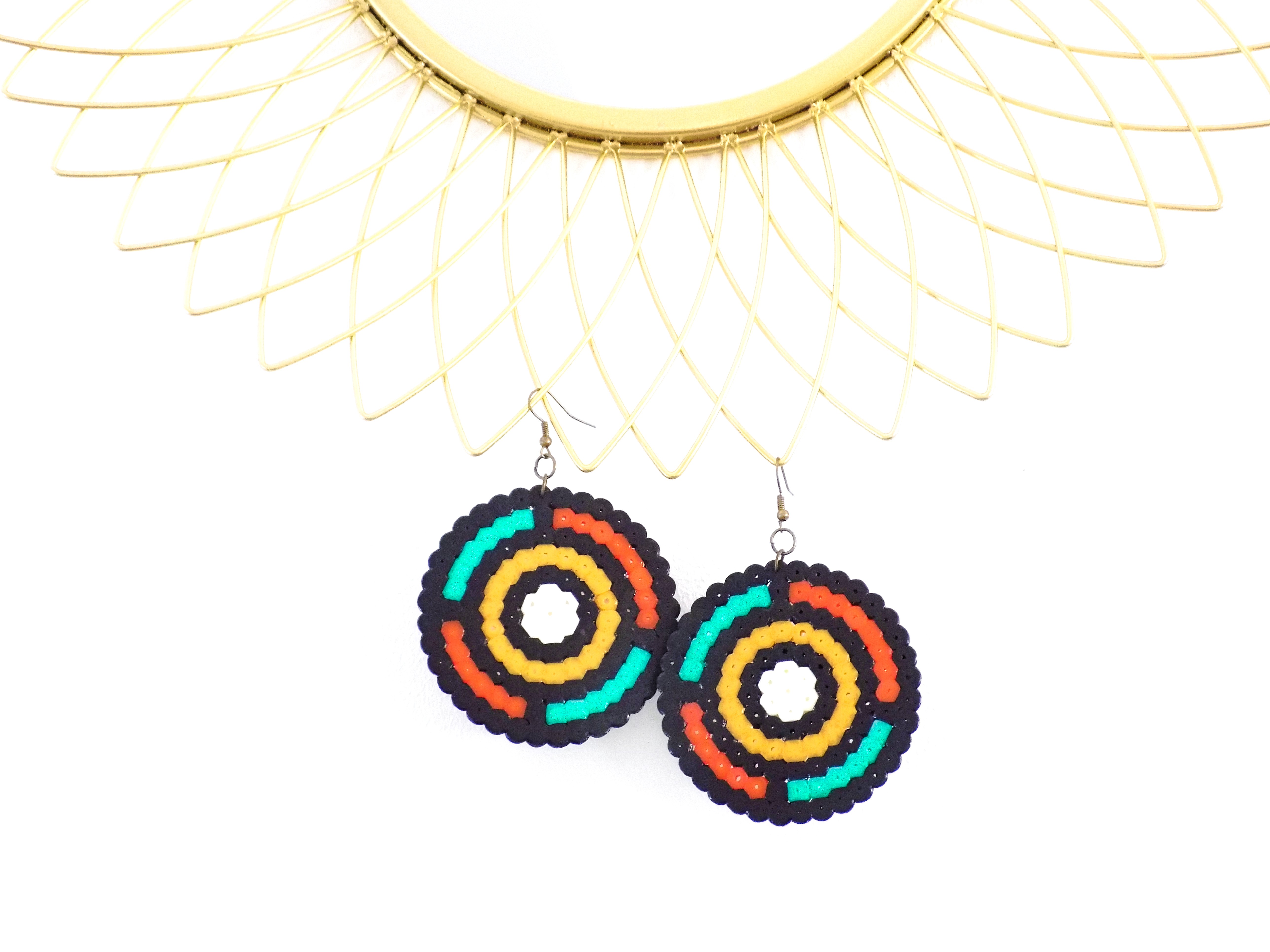 ♡ Mayssiâ ♡ Boucles d'oreilles, cadeau artisanal, noir, vert, jaune, orange, multicolore, bijou ethnique, géométrique, cadeau femme, pièce unique, fait-main