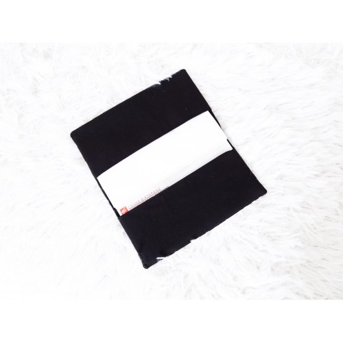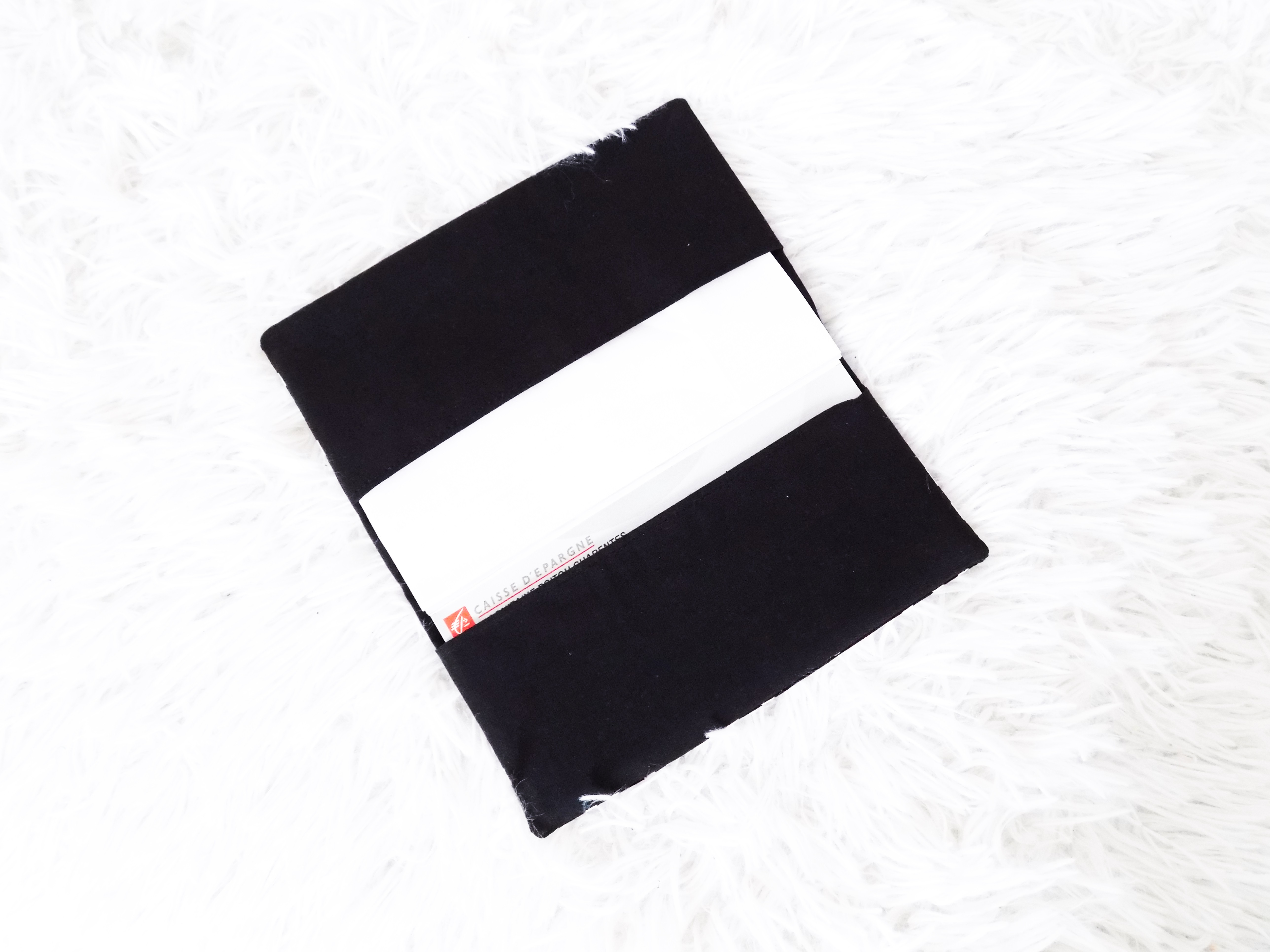 Il est confectionné dans des tissus 100 % coton: un tissu noir pour l 'intérieur et un superbe imprimé géométrique pour l'extérieur.