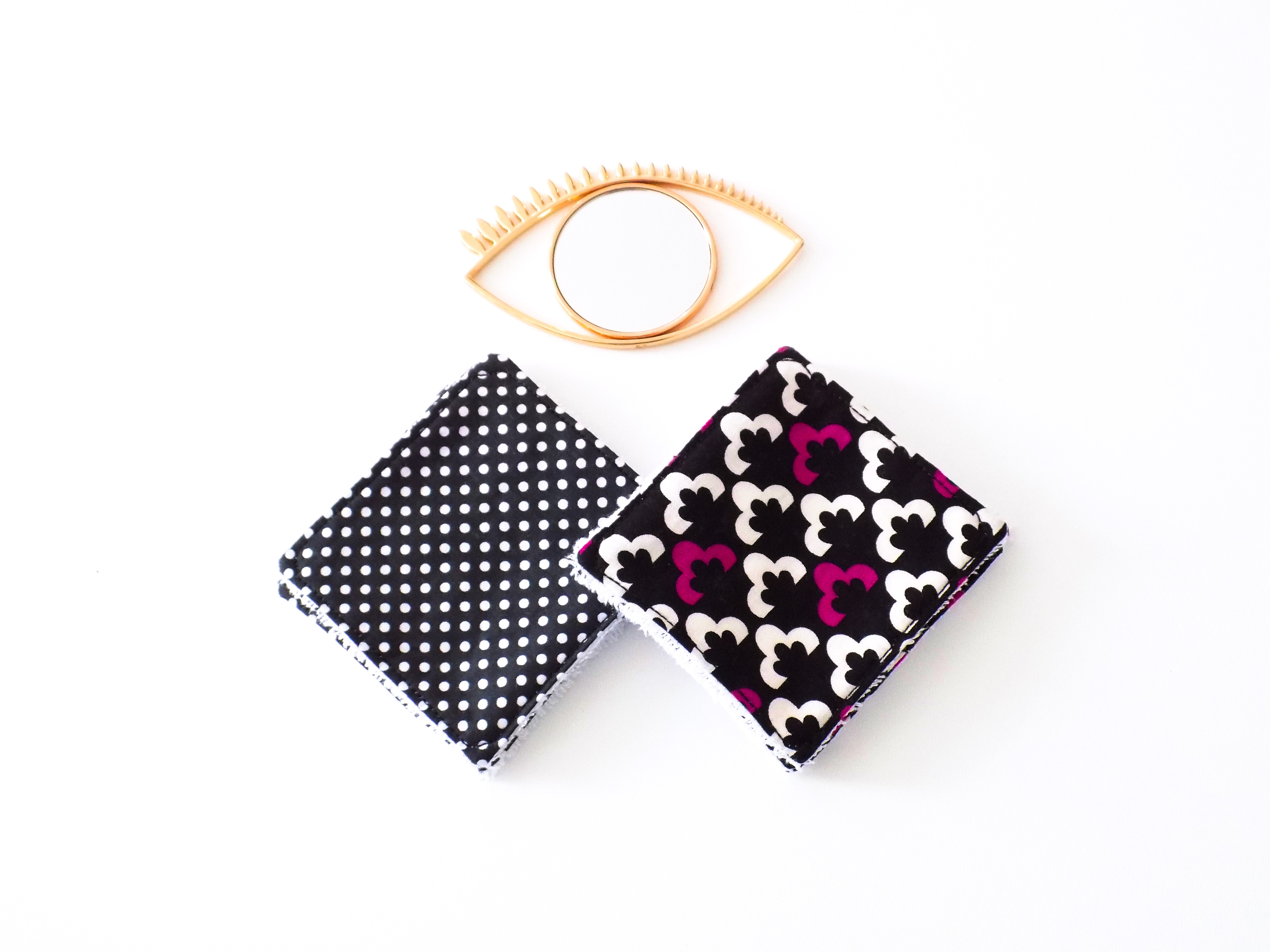En coton imprimé et éponge naturelle de bambou ( 4 lingettes en tissu oriental et 3 lingettes en tissu petits pois ) une éponge fine, souple et extra douce, idéale pour les articles de puériculture.