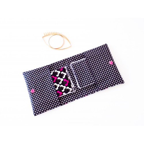 Jolie pochette pour transporter et stocker vos lingettes. Elle est confectionnée dans un tissu assorti et se ferme par bouton pression.