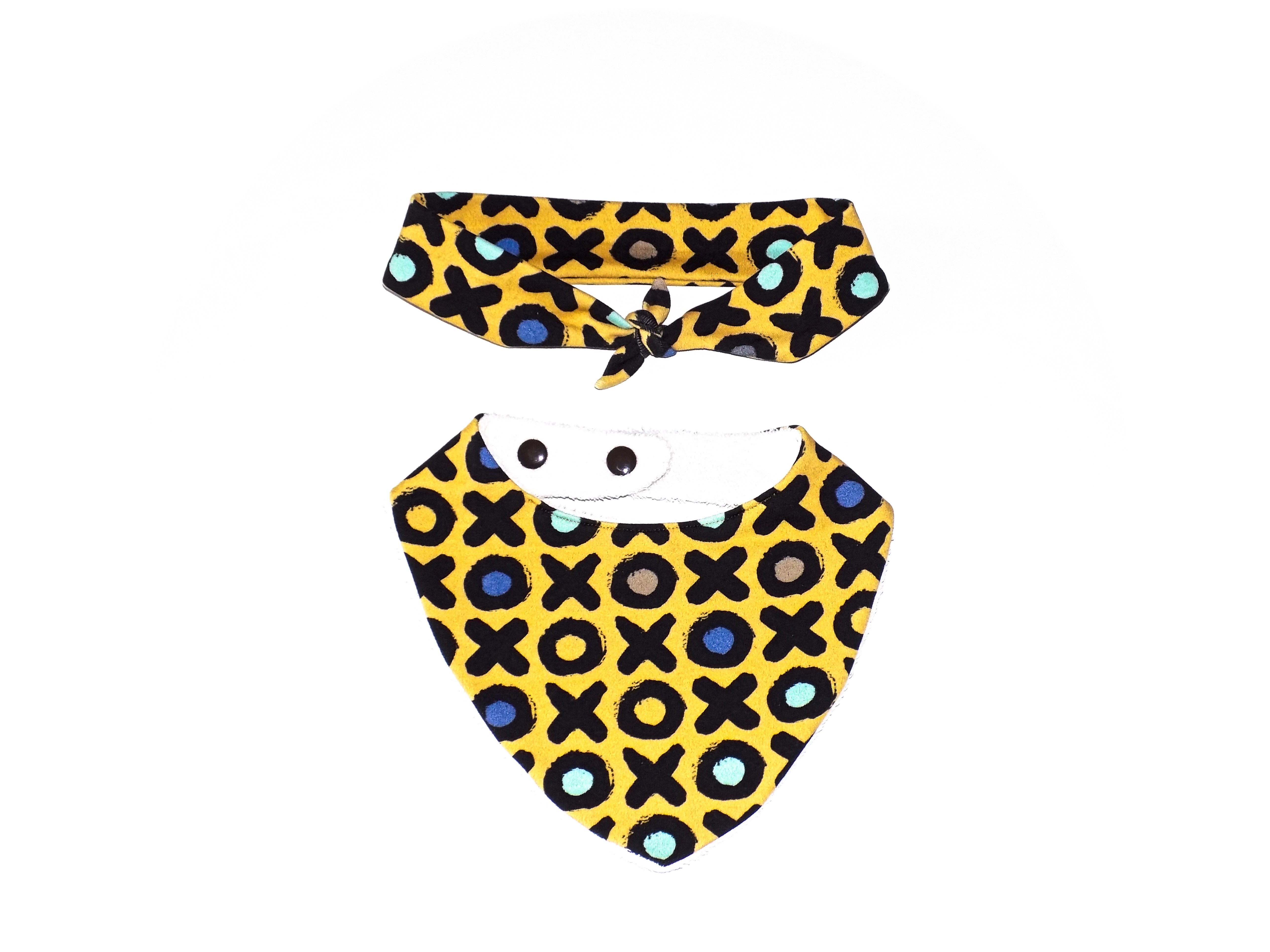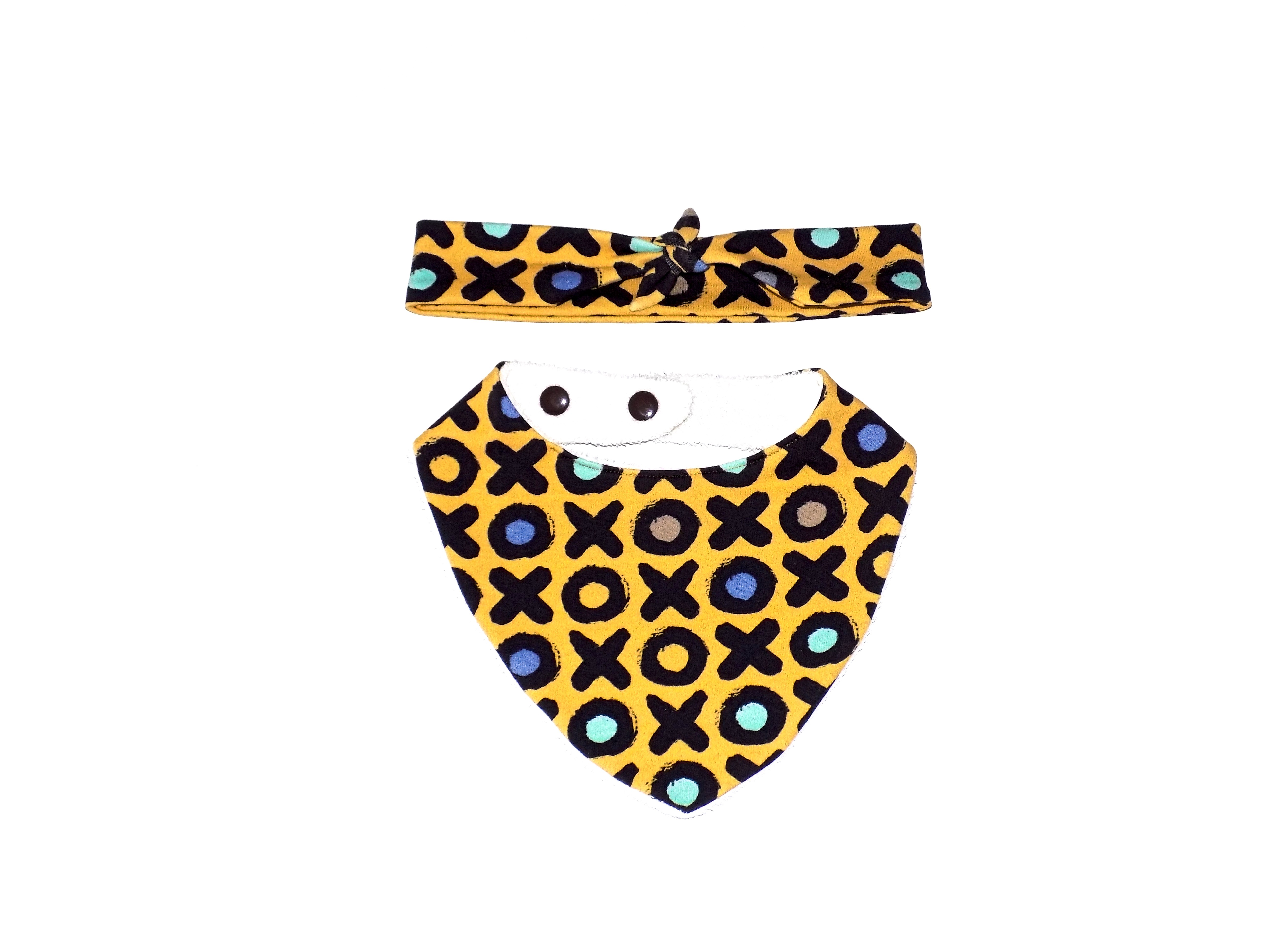 Eviter le sèche-linge pour ne pas abîmer les fibres des tissus du bavoir et du headband.