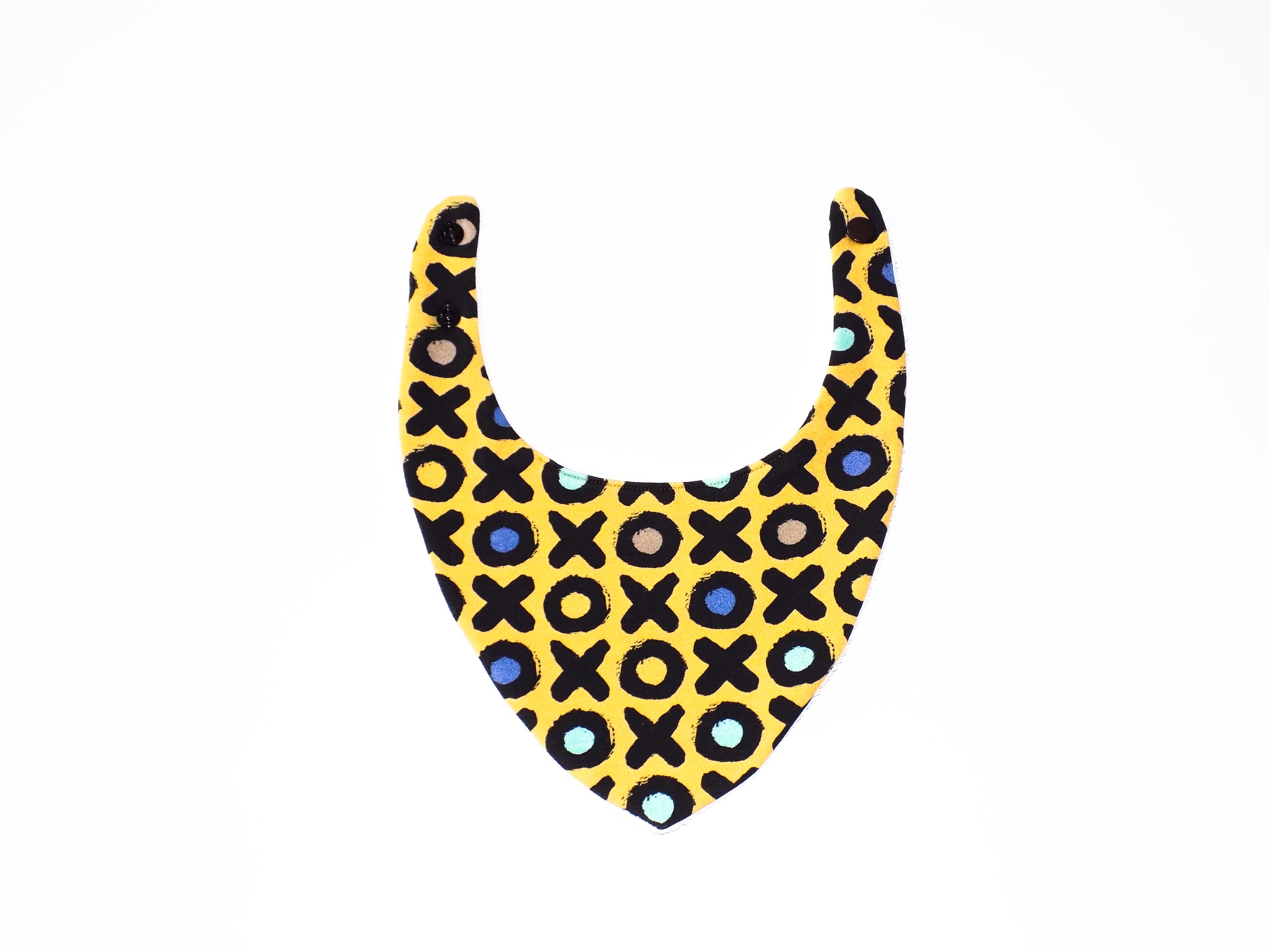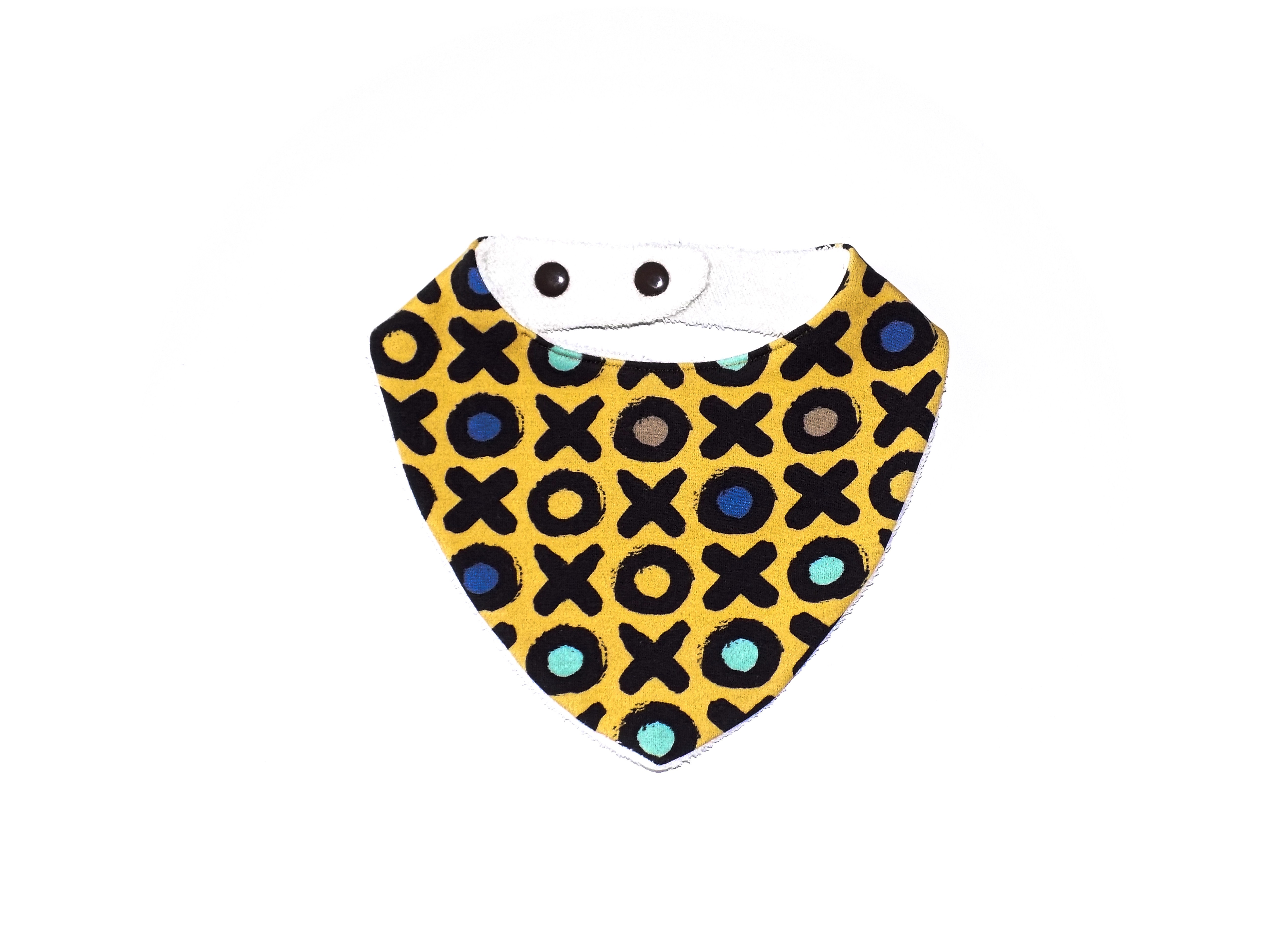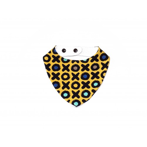 Pratique, il se ferme par deux boutons pression en résine qui permettent d'ajuster le bavoir au tour du cou de bébé.