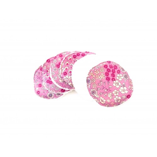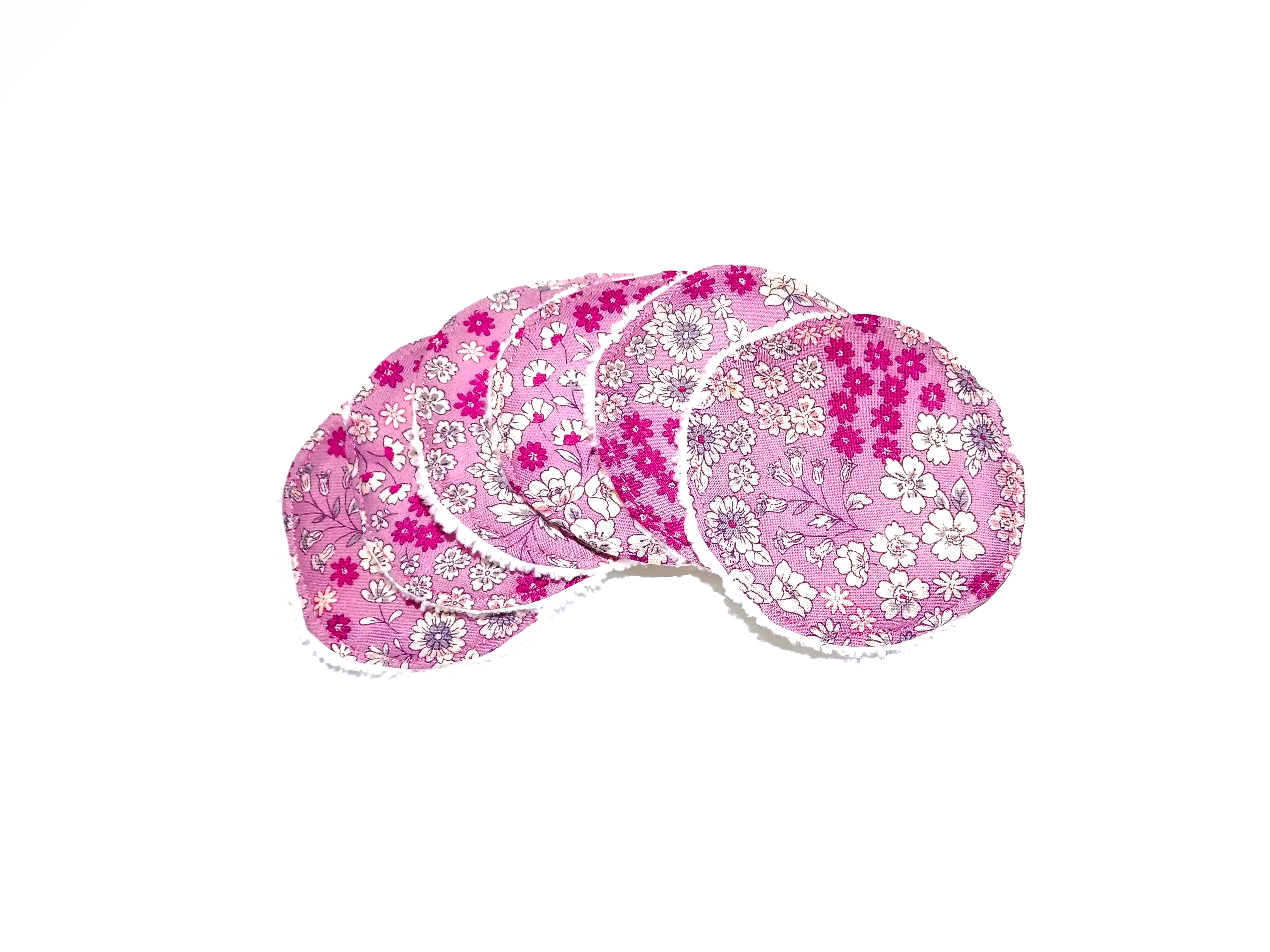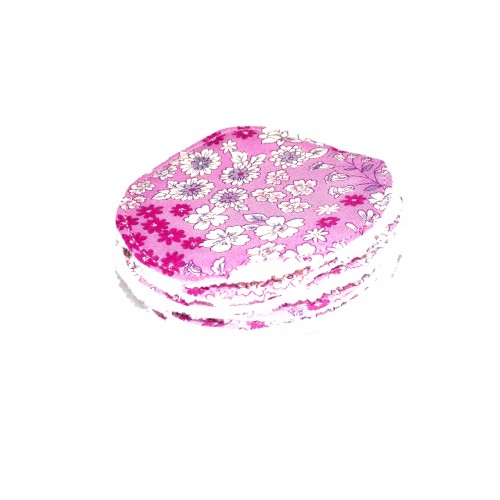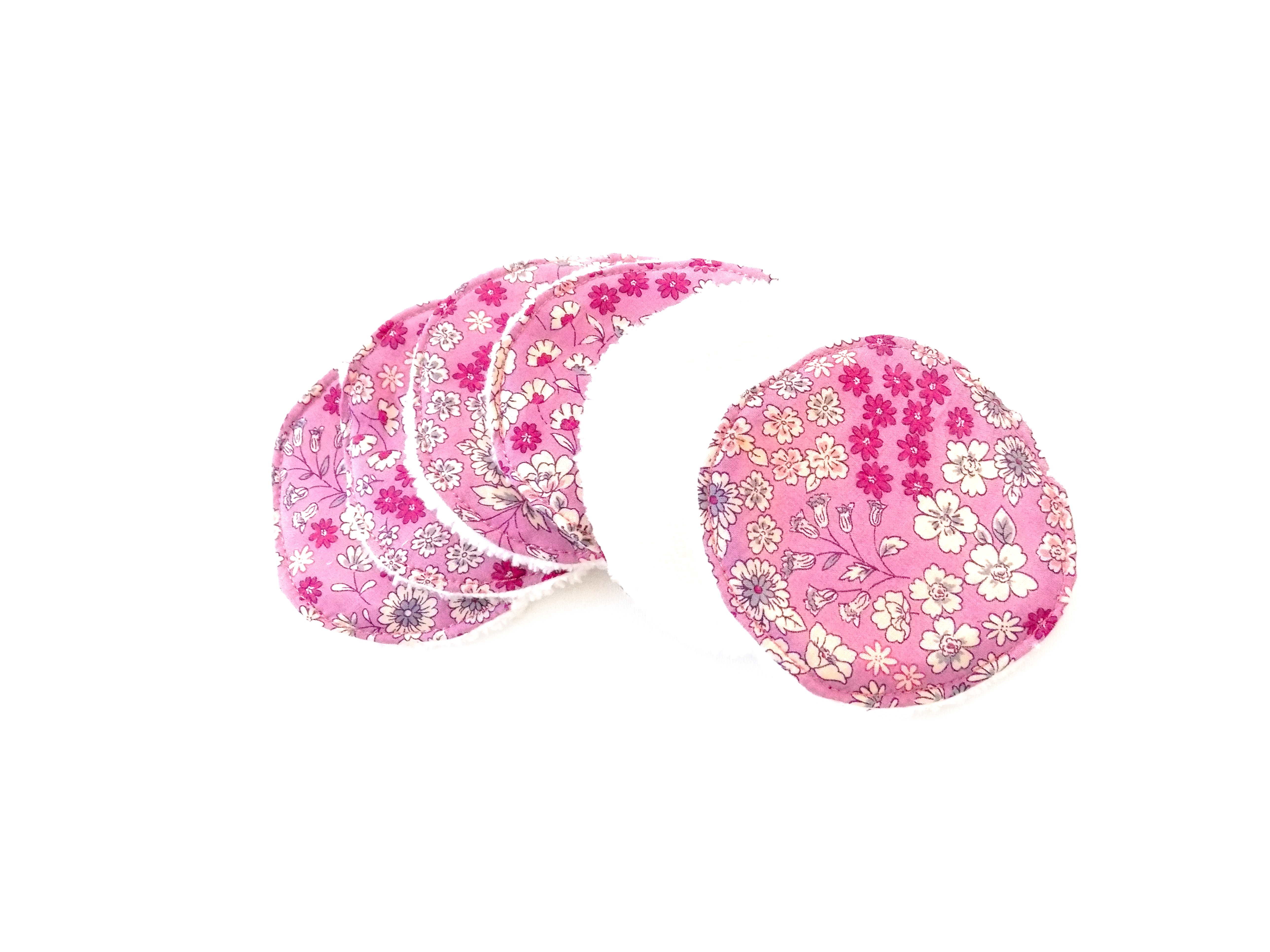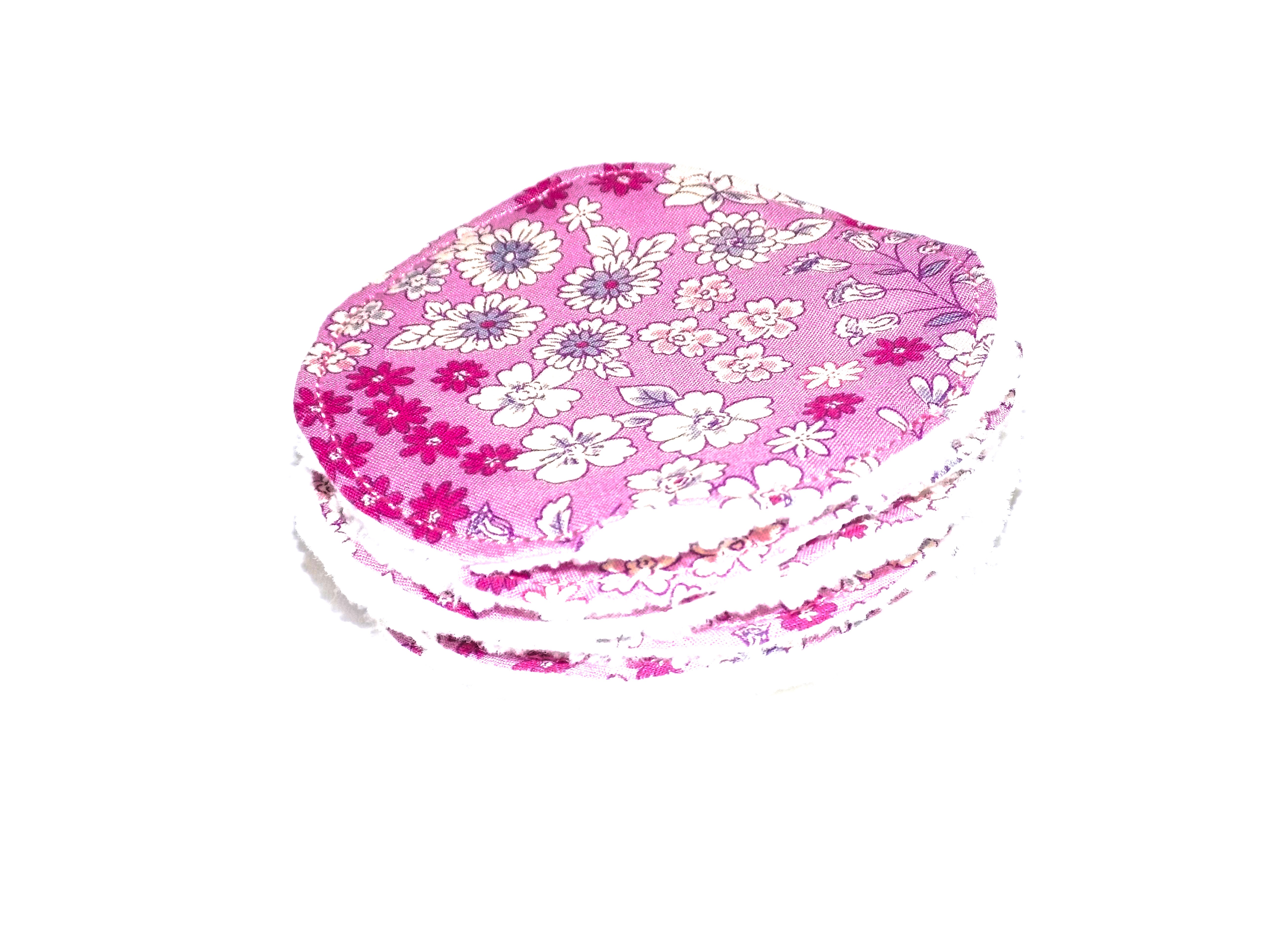 Lot de six disques démaquillants lavables en coton imprimé et éponge naturelle de bambou, une éponge fine, souple et extra douce, idéale pour les articles de puériculture.