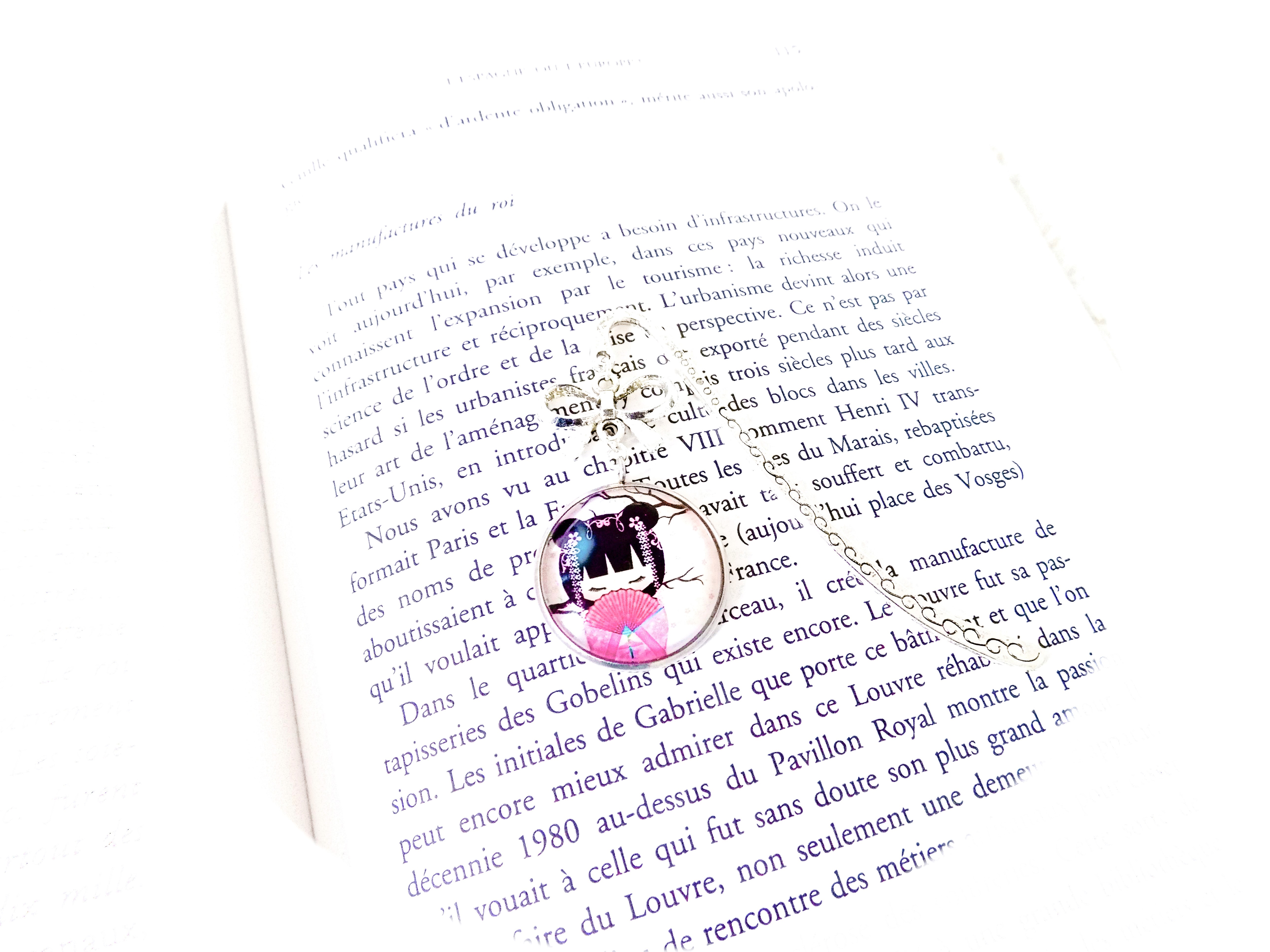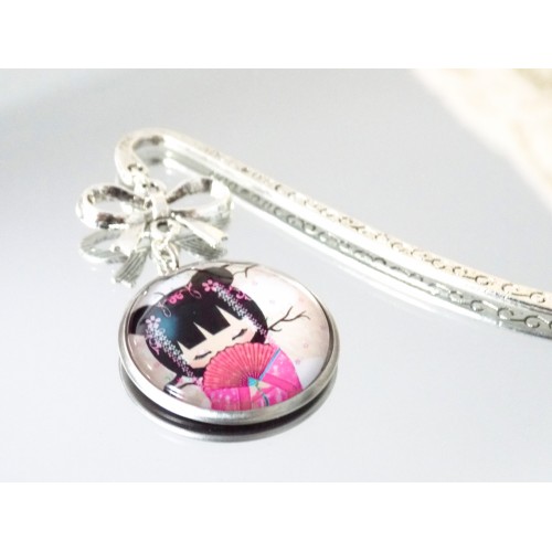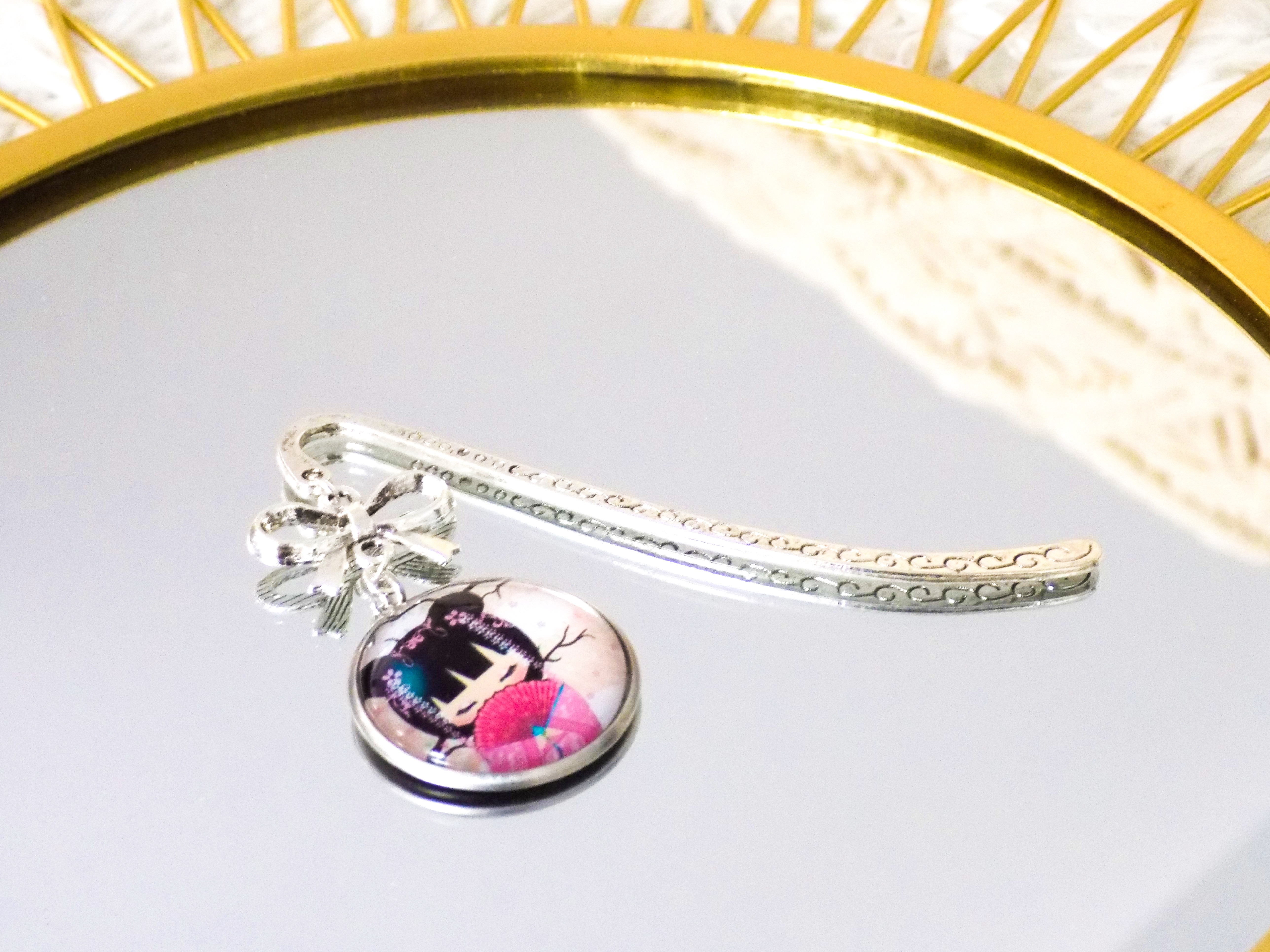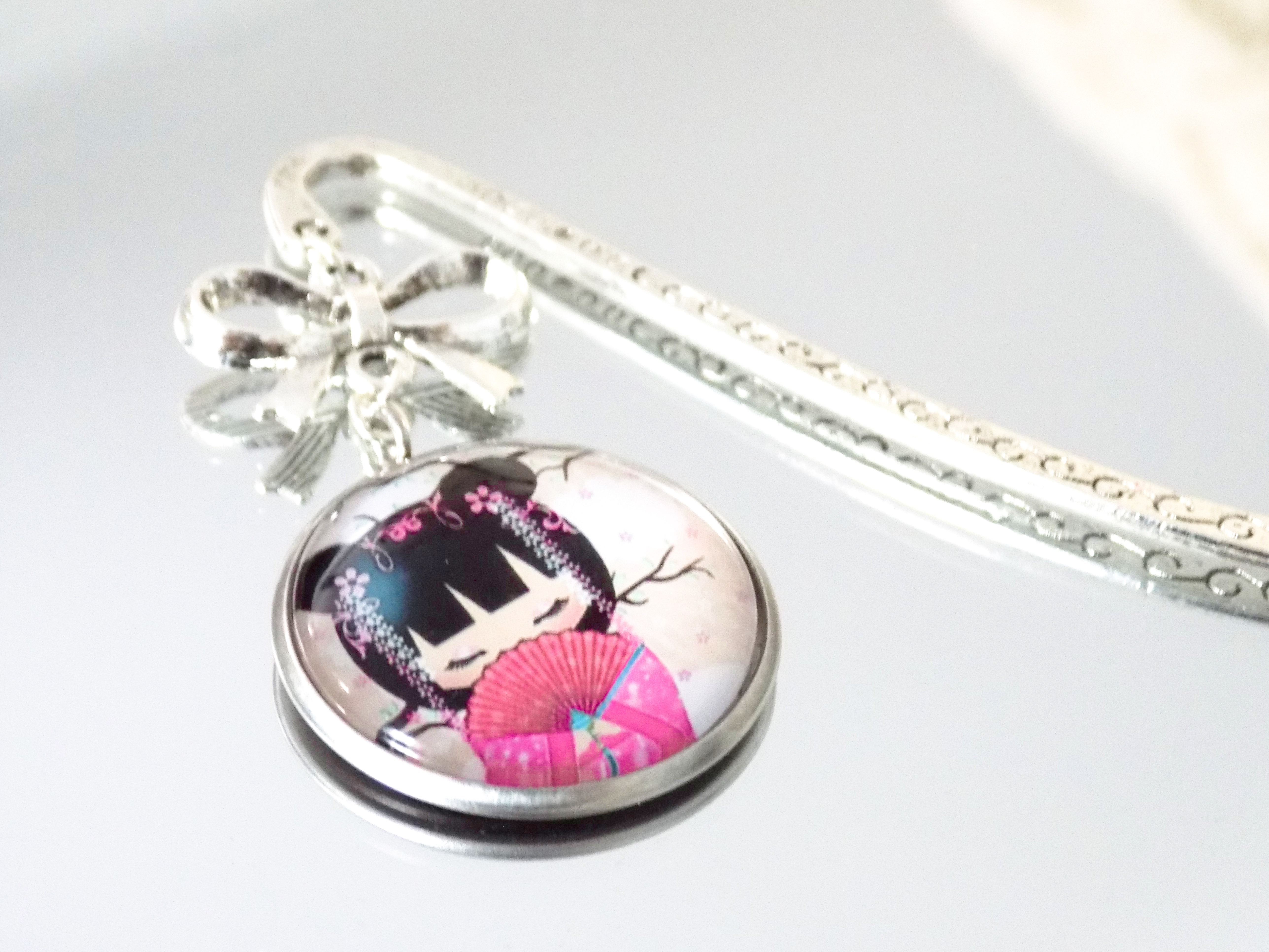 ♡ Sakura ♡ Marque-page, poupée japonaise, kokeshie, rose, blanc, bleu, multicolore, bijou, cadeau femme, pièce unique, article fait-main