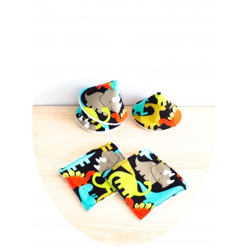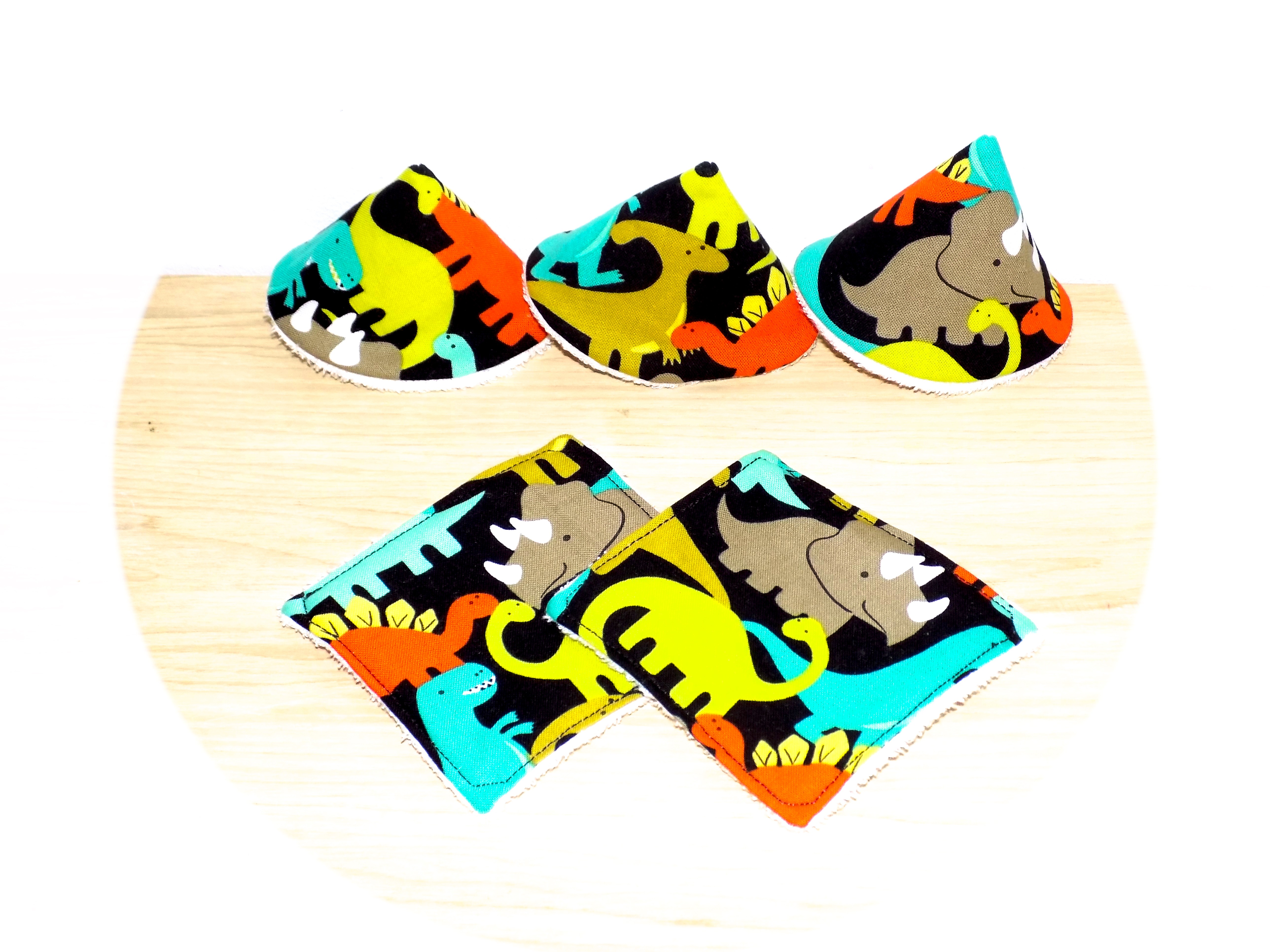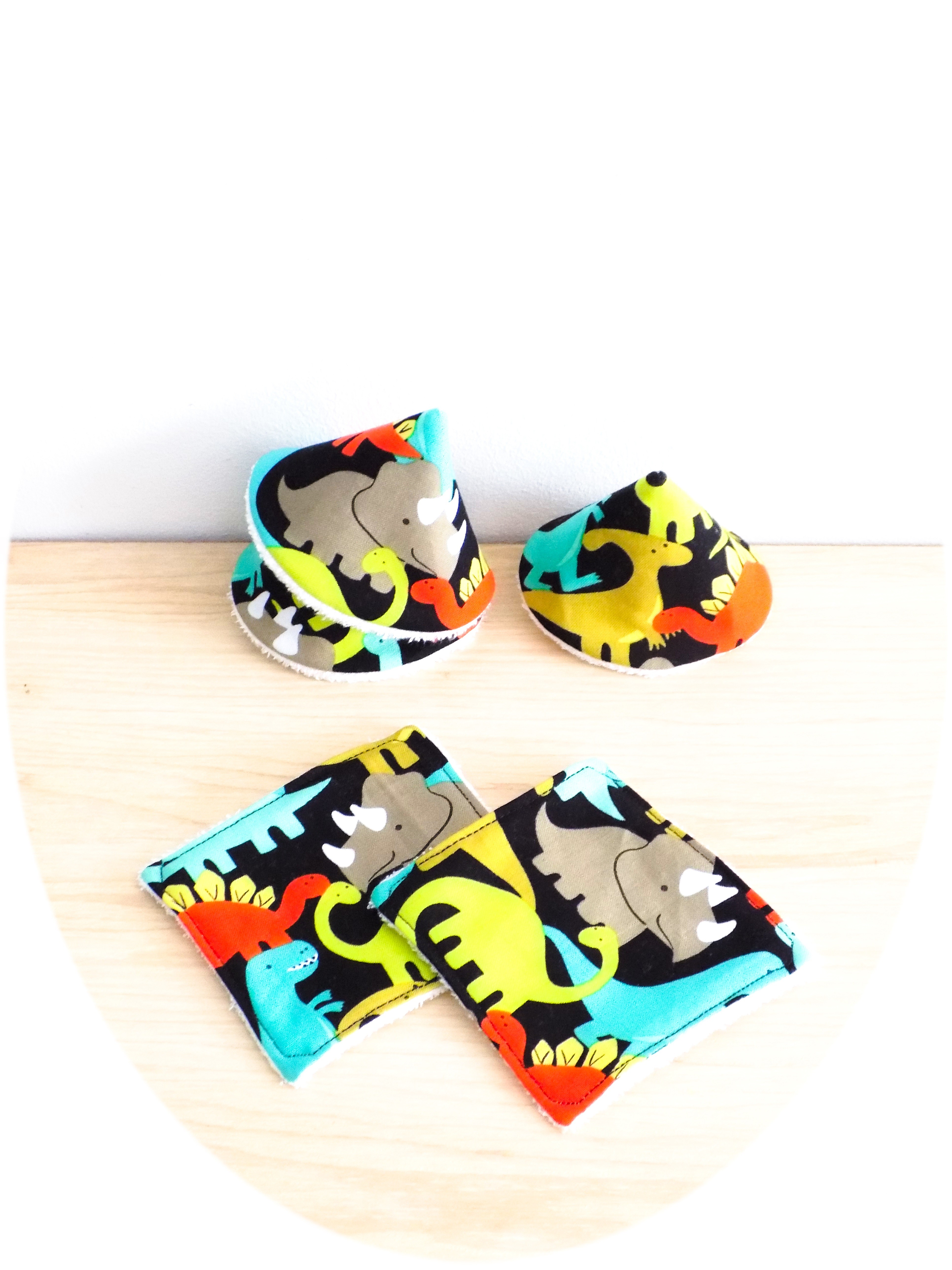 Lot de trois pare-pipis lavables ( recto: tissu coton imprimé / verso: tissu éponge de bambou Oeko Tex )