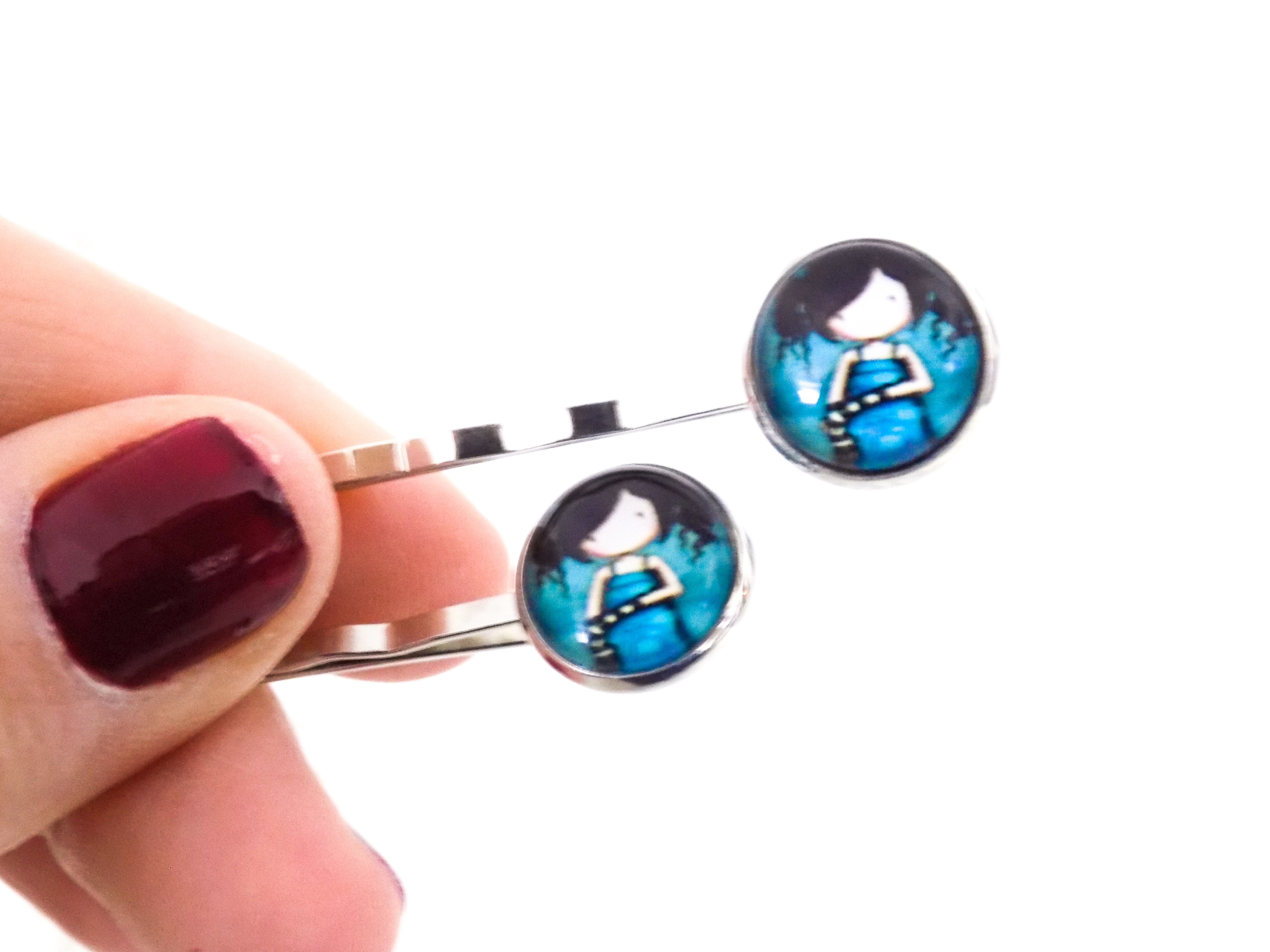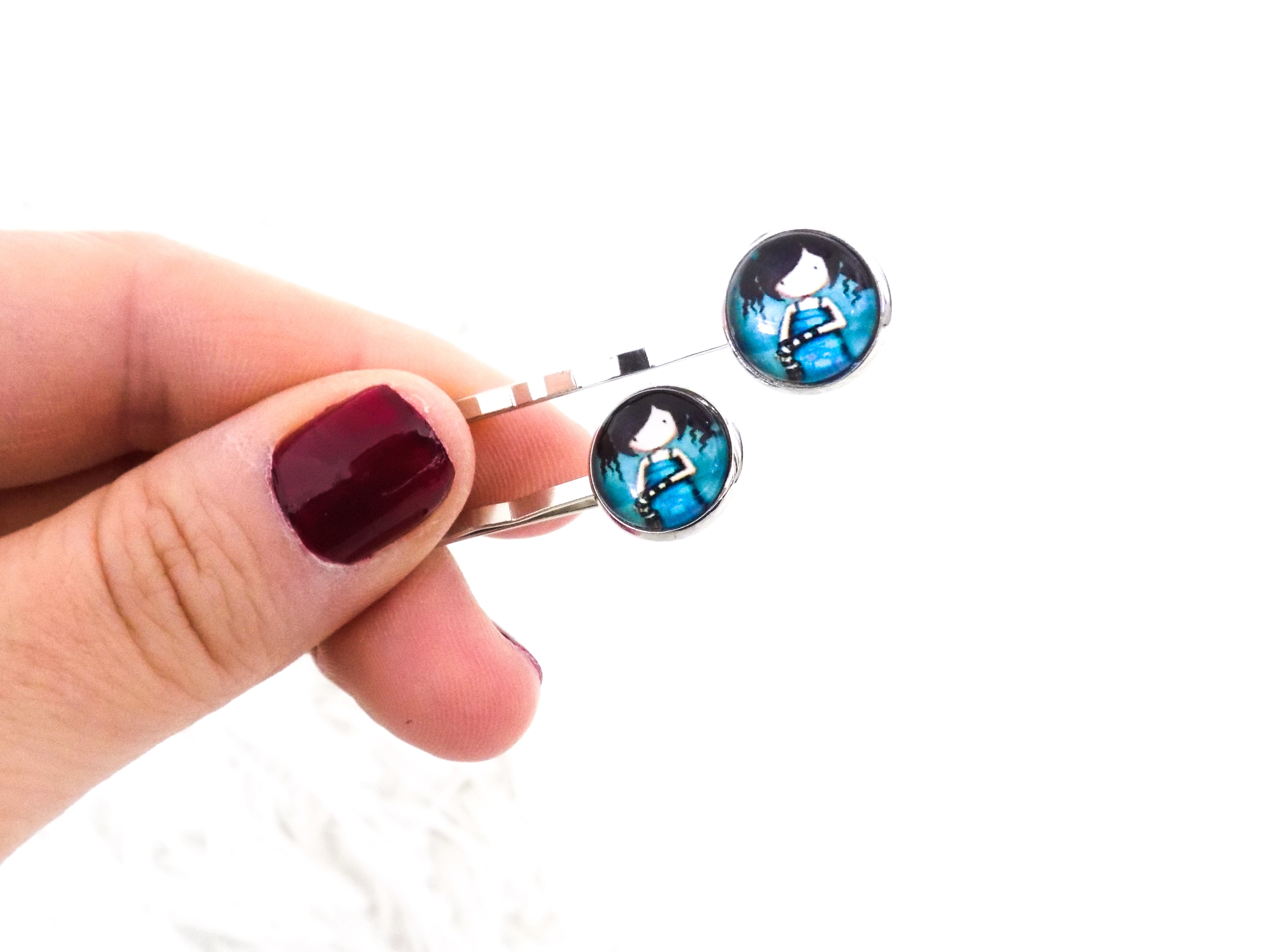 Supports métal argenté agrémentés d'un ravissant cabochon fille.