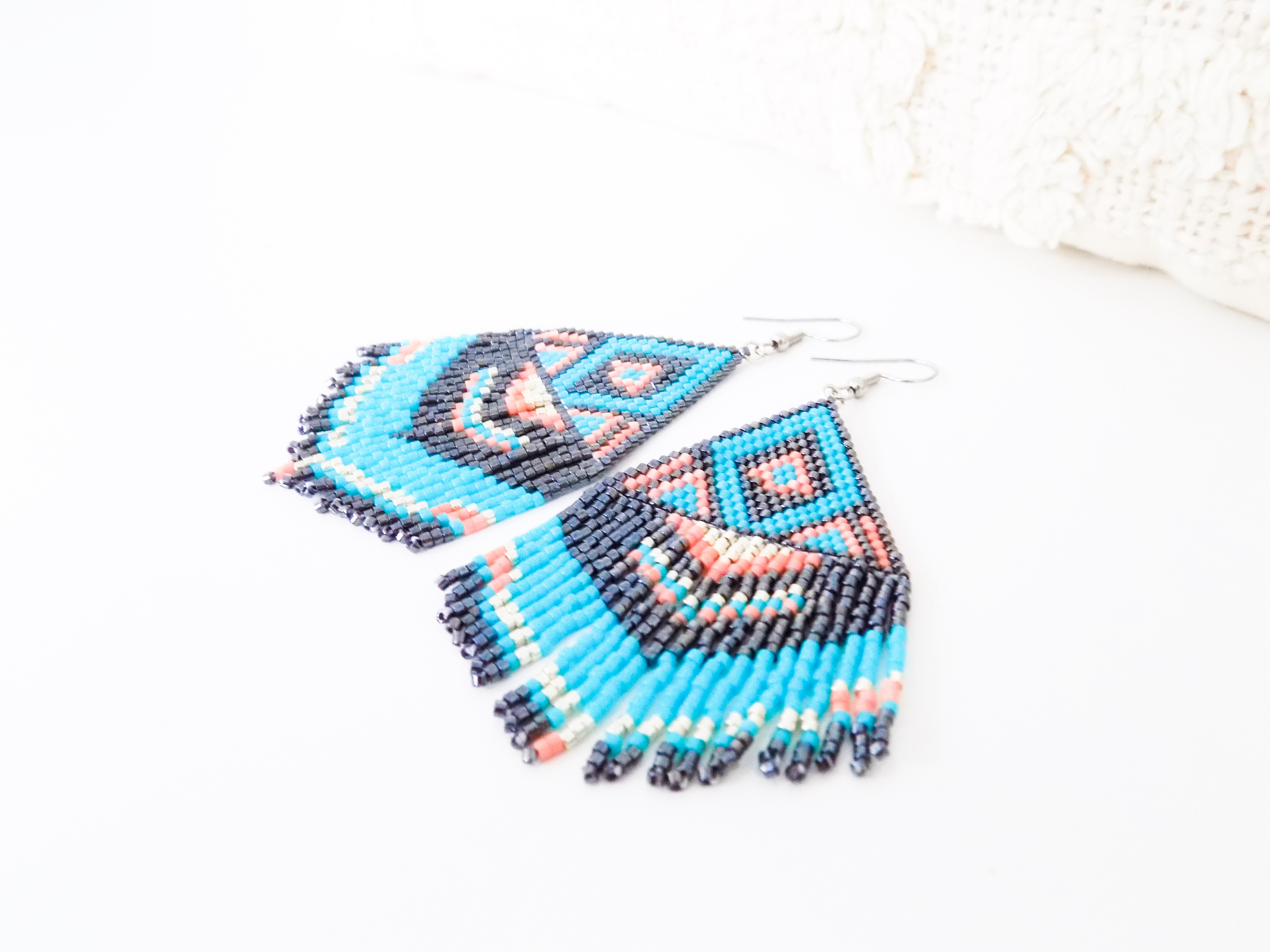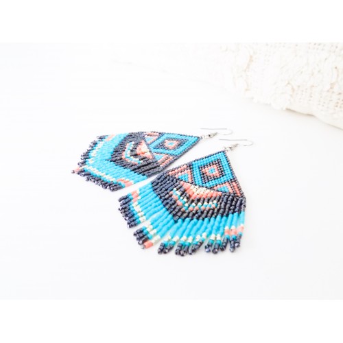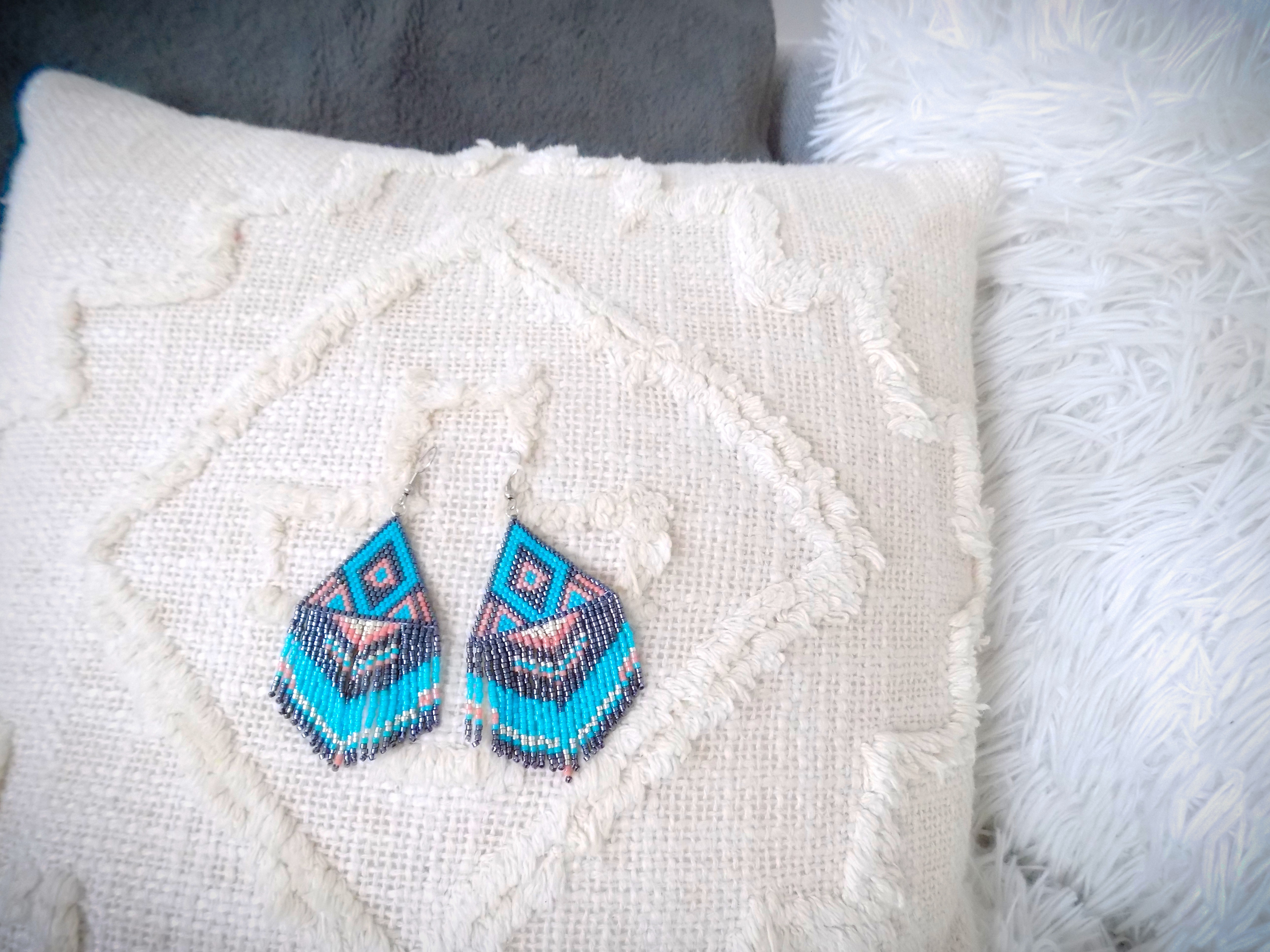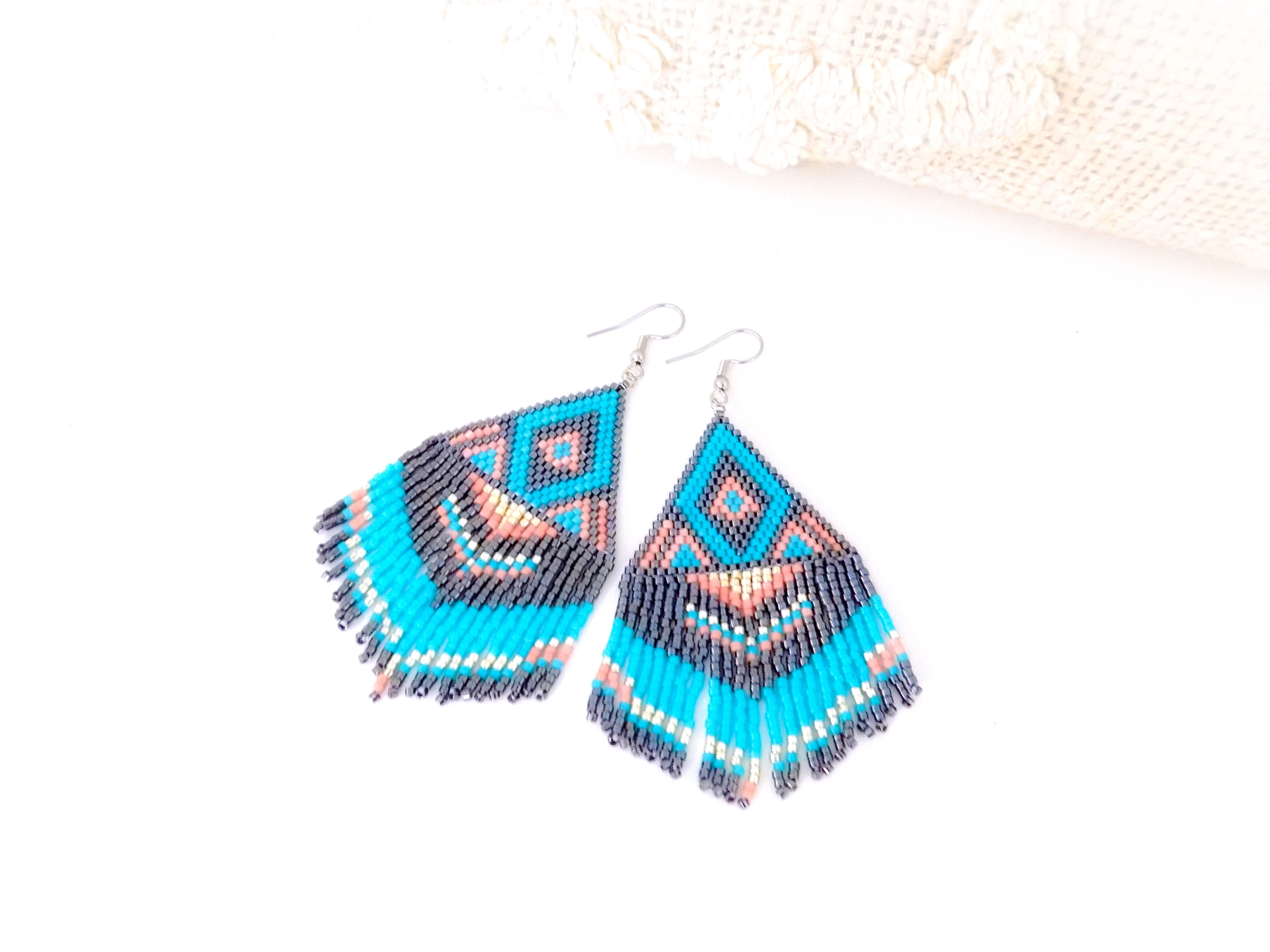 Ravissantes boucles d'oreilles confectionnées de manière artisanale grâce à un minutieux et long tissage de perles.