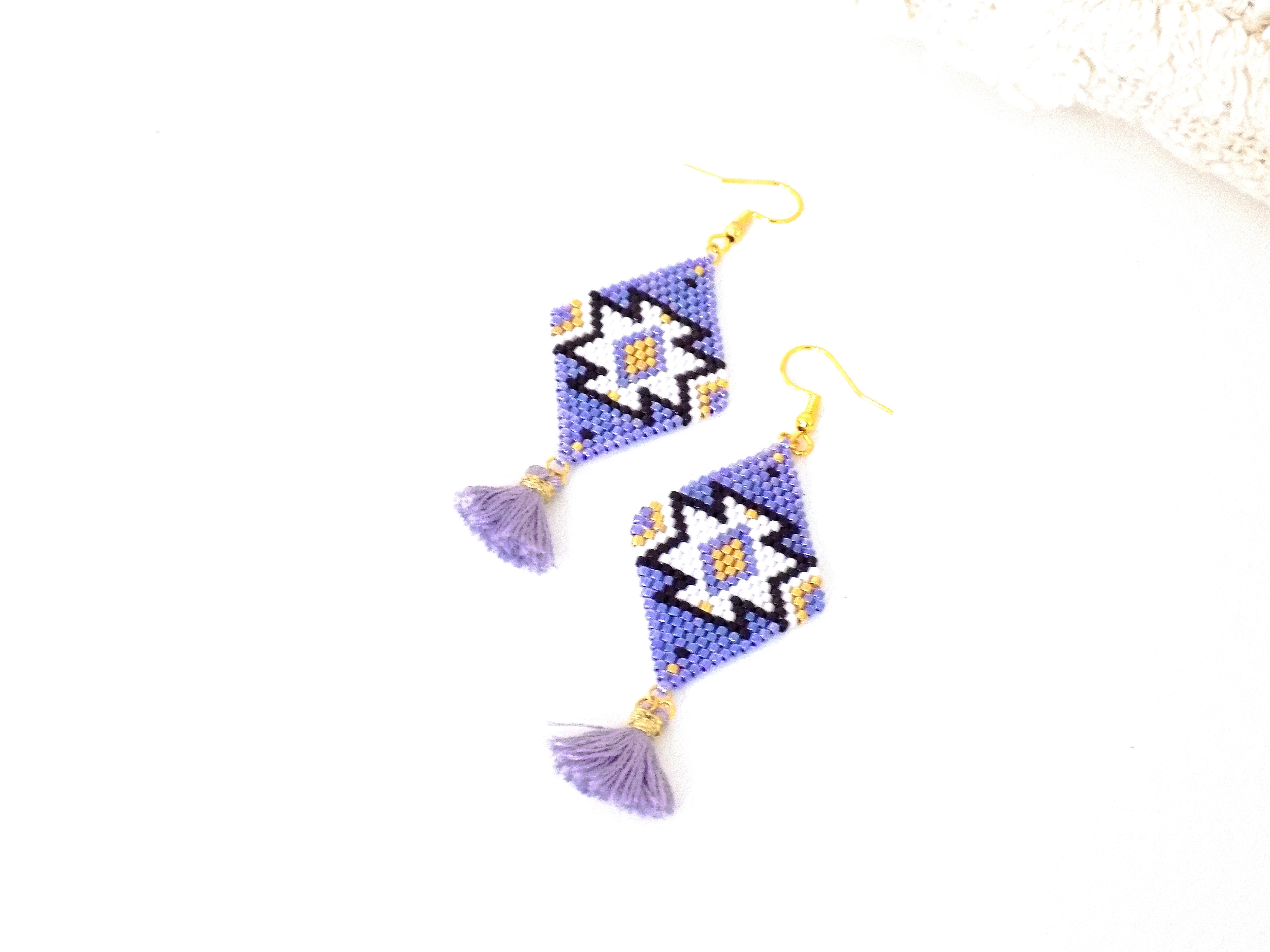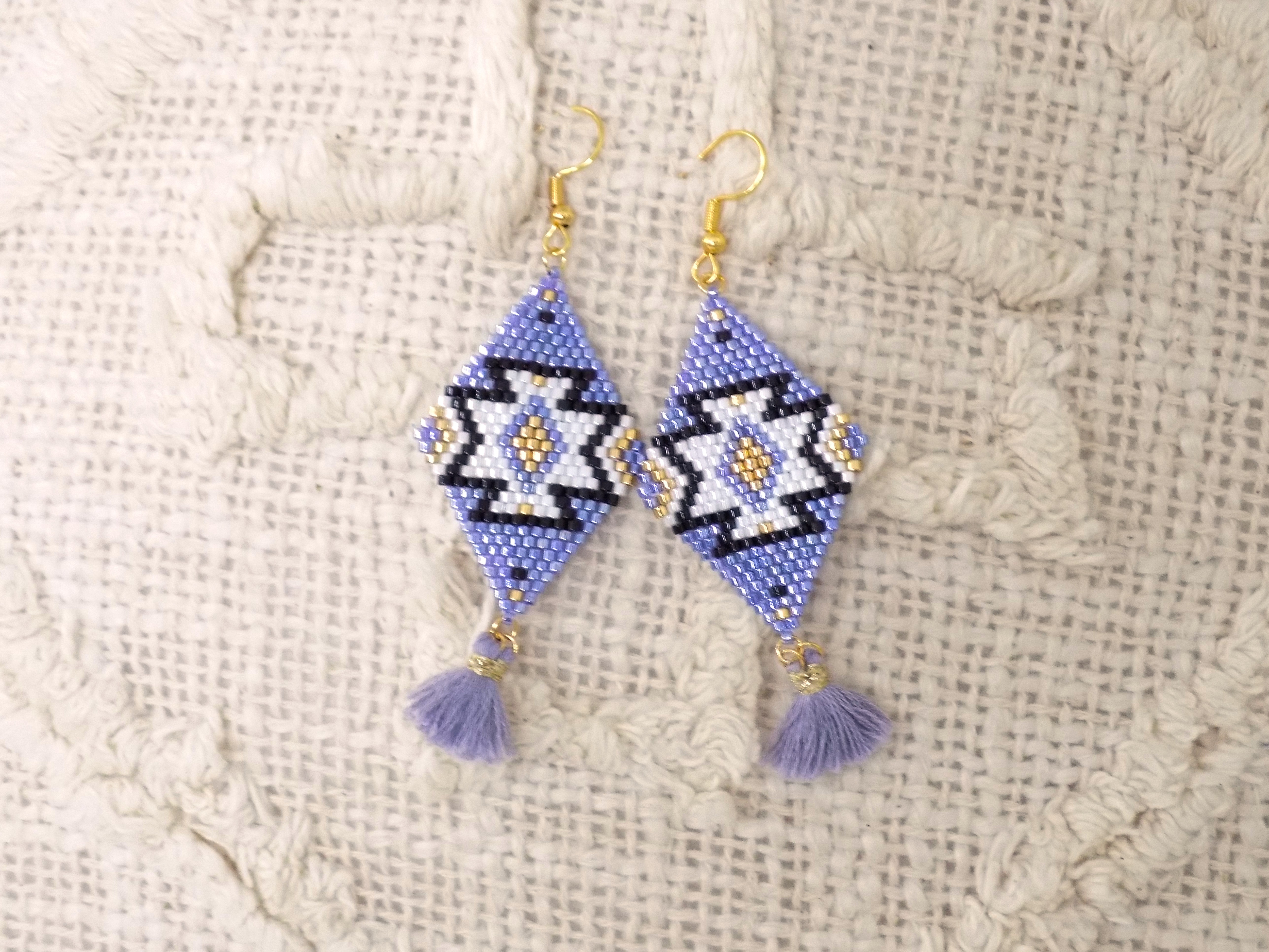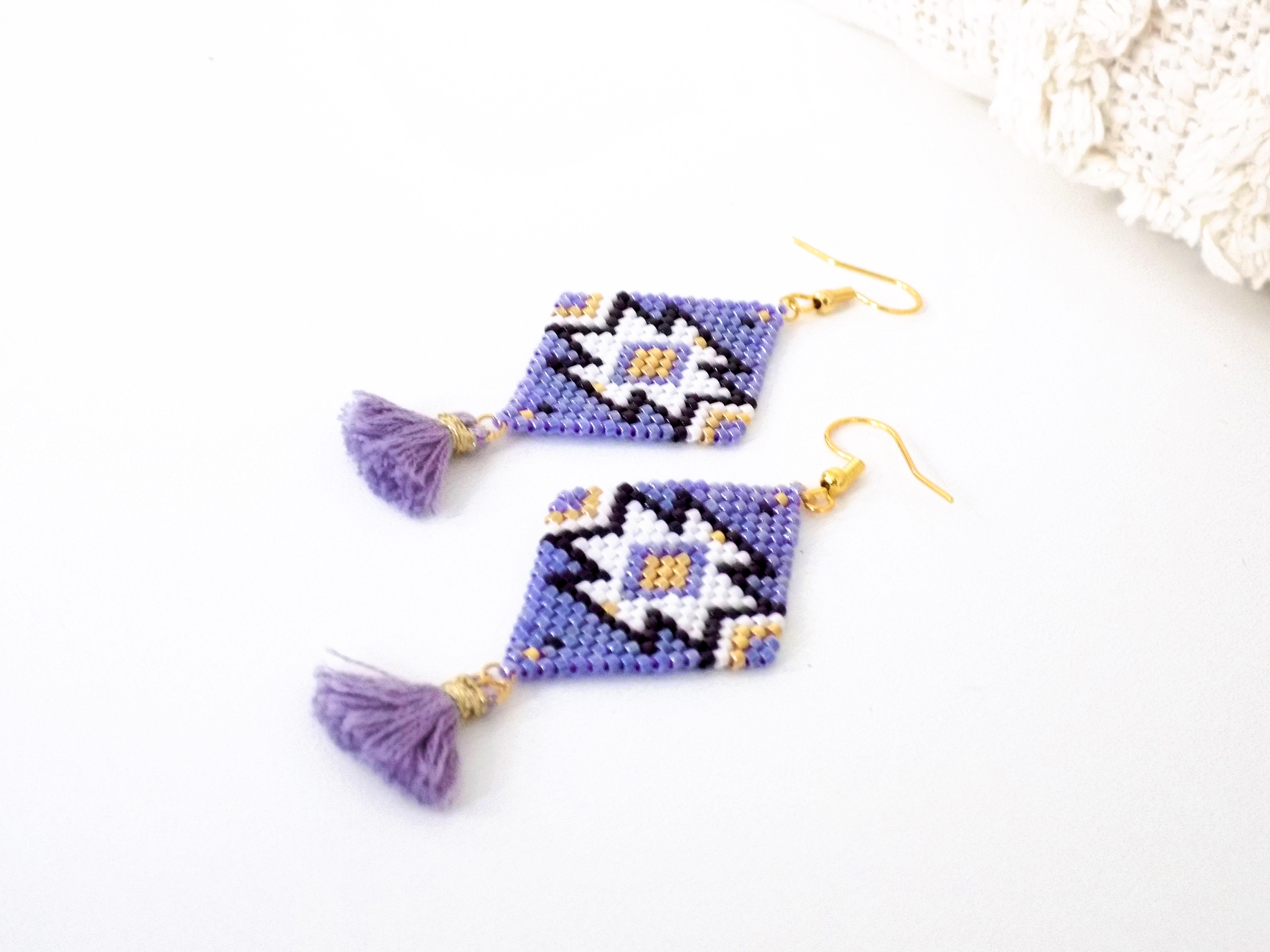 Ravissantes boucles d'oreilles confectionnées de manière artisanale avec des perles japonaises de qualité supérieure et agrémentées de jolis pompons.