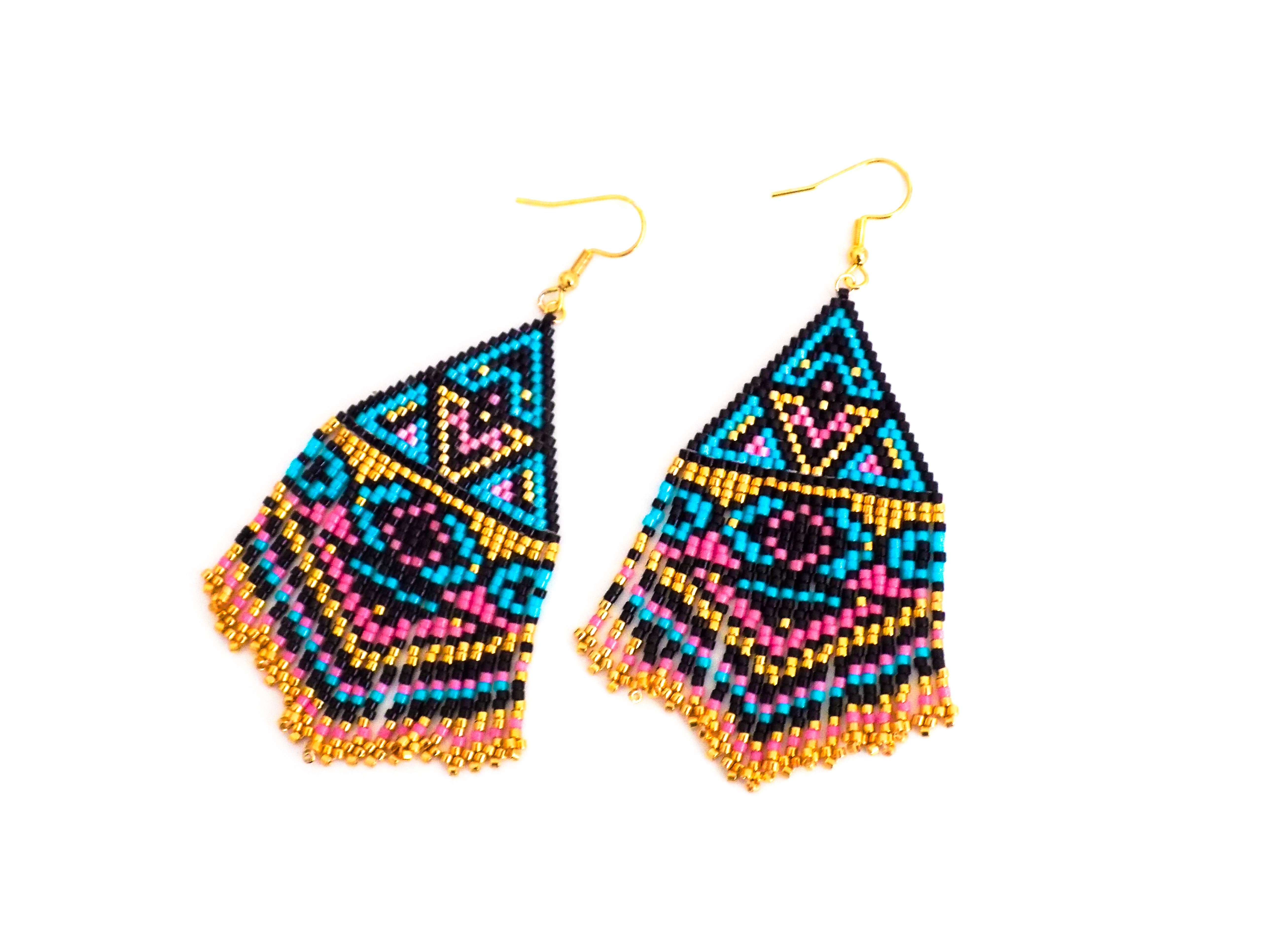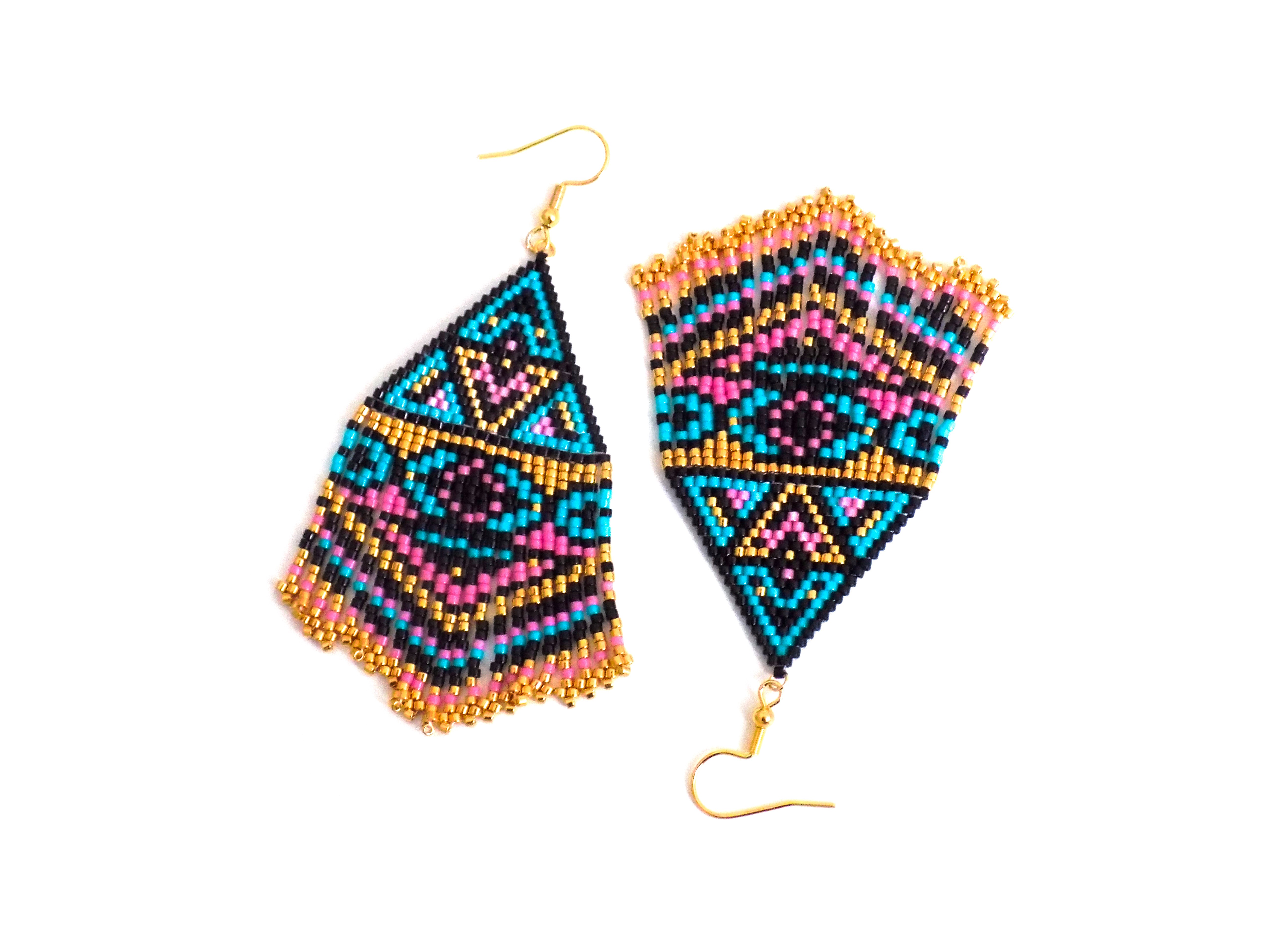 Ravissantes boucles d'oreilles confectionnées de manière artisanale grâce à un minutieux et long tissage de perles japonaises de qualité supérieure.