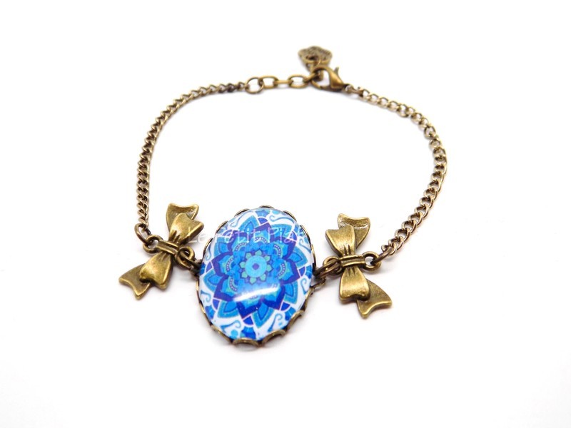 Magnifique bracelet en métal bronze avec son cabochon en verre motif mandala. Parfait pour apporter une touche originale et colorée à votre look.