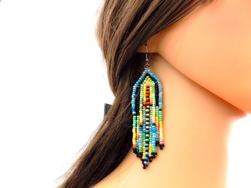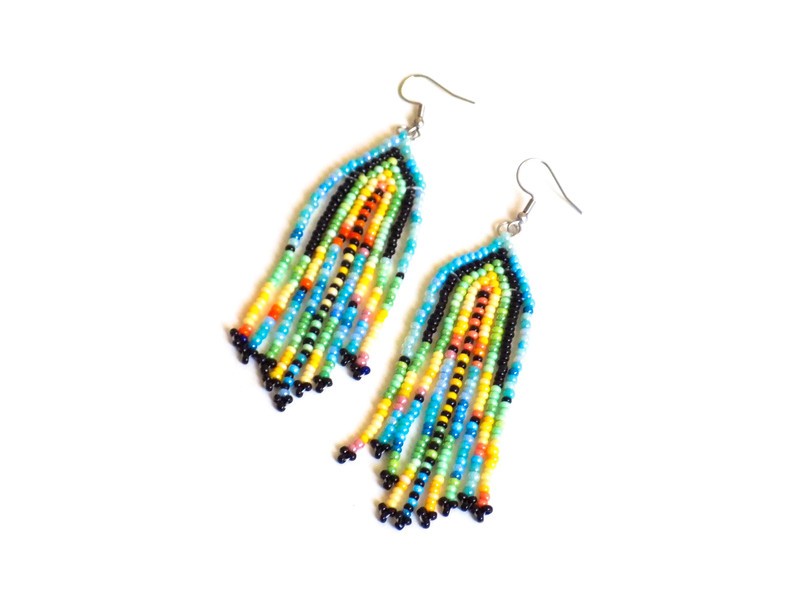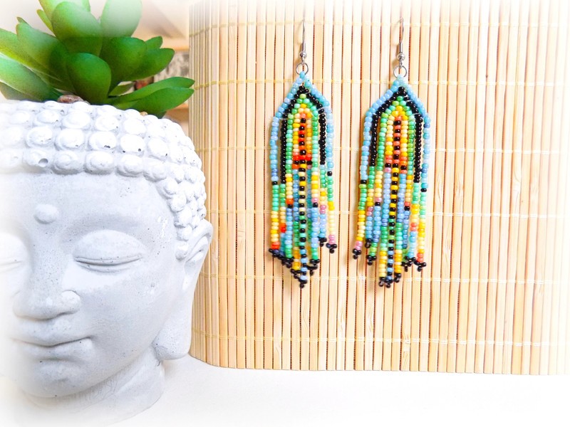 Ravissantes boucles d'oreilles confectionnées de manière artisanale grâce à un minutieux et long tissage de perles de rocaille.