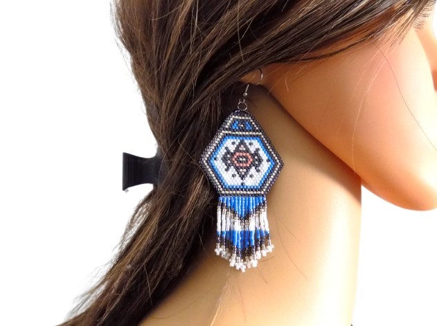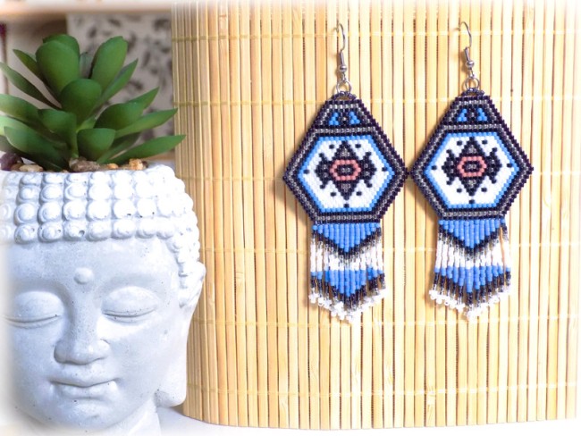 Ravissantes boucles d'oreilles confectionnées de manière artisanale grâce à un minutieux et long tissage de perles japonaises de qualité supérieure.