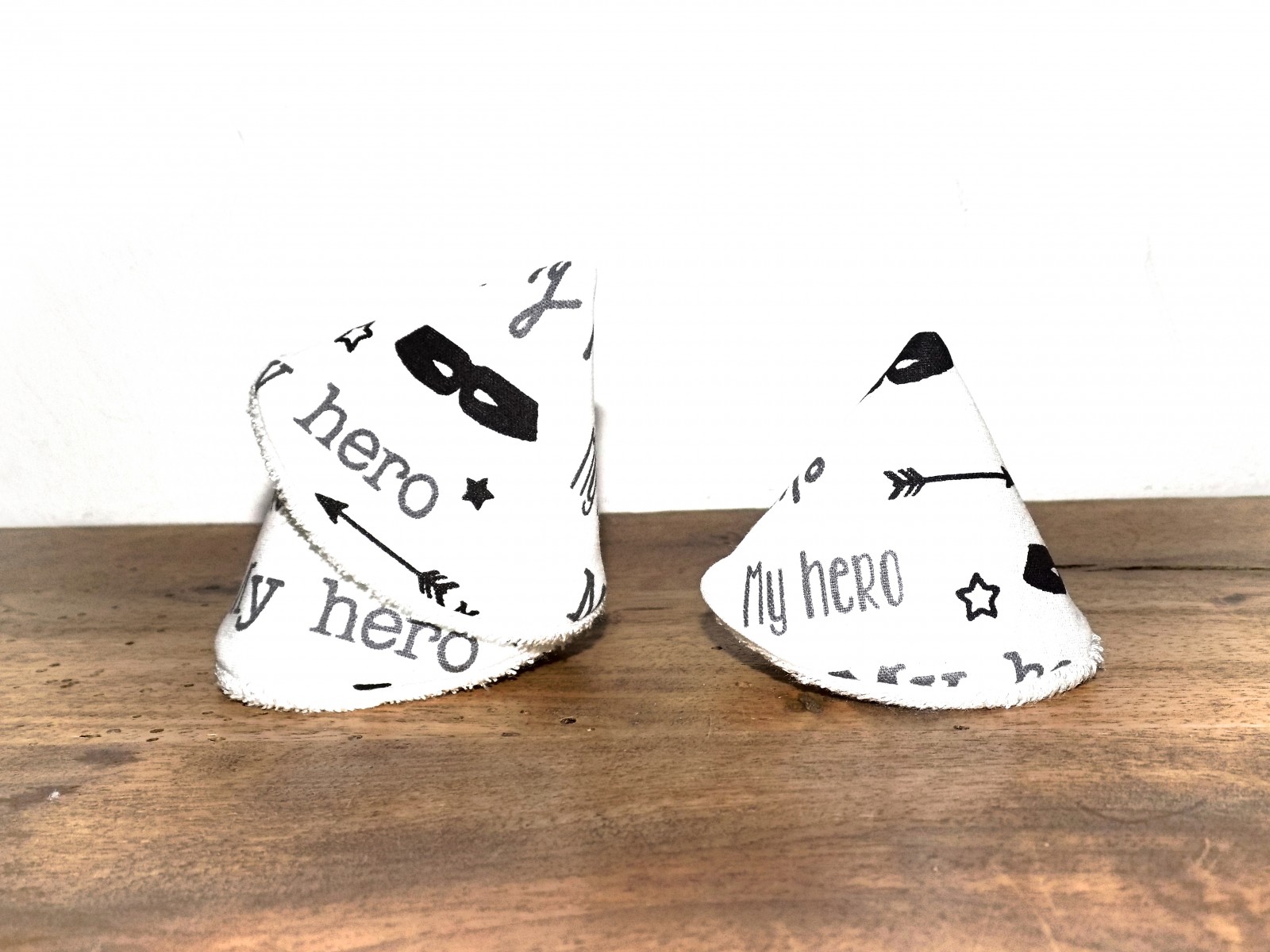Lot de trois pare-pipi lavables au motif masque ( Coton imprimé et éponge naturelle de bambou, une éponge fine, souple et extra douce, idéale pour les articles de puériculture. Son séchage est rapide, elle est également très absorbante et garde sa souplesse même après divers lavages --> origine Europe et certifiée Oeko Tex).