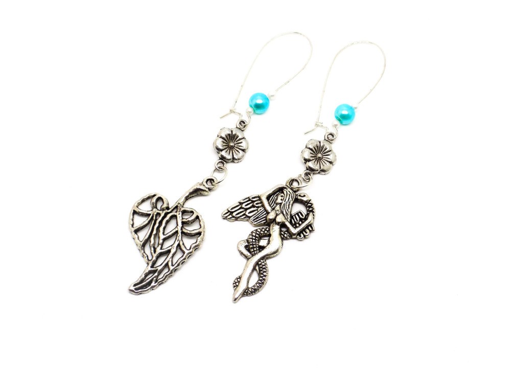 Supports métal argenté agrémentés de breloques et de perles nacrées.
