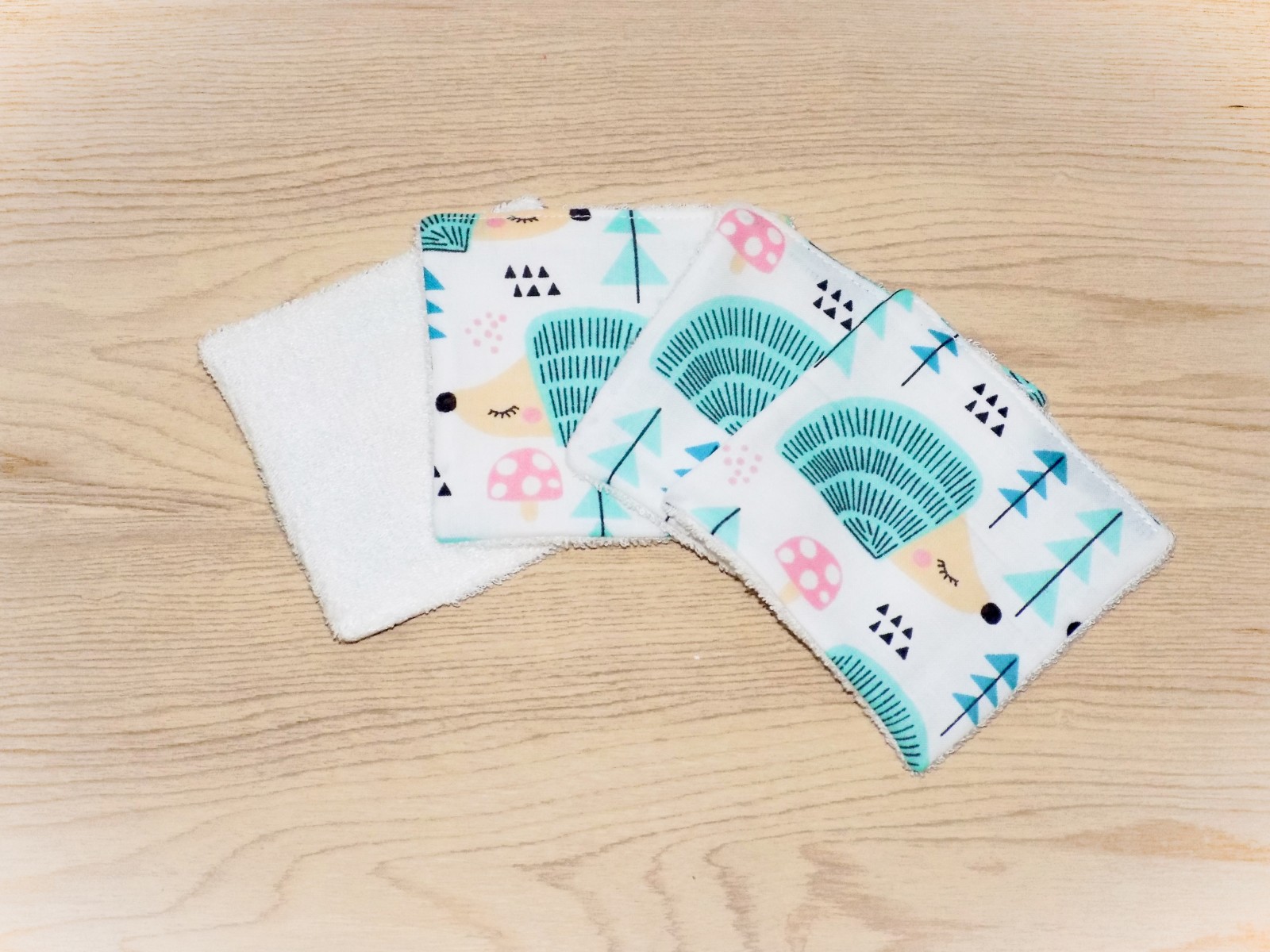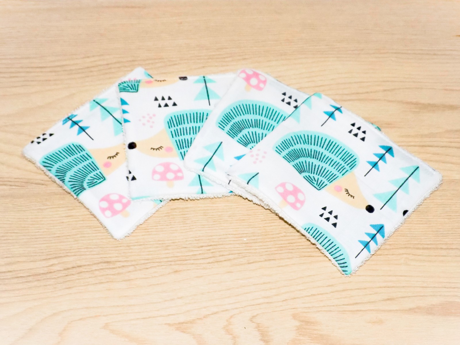 Lot de quatre lingettes lavables petit format, elles remplacent avantageusement les lingettes classiques et le coton tout en vous faisant faire des économies. Réutilisables, pratiques, elles peuvent être utilisées pour le change de bébé, le nettoyage du visage, comme lingettes démaquillantes etc.