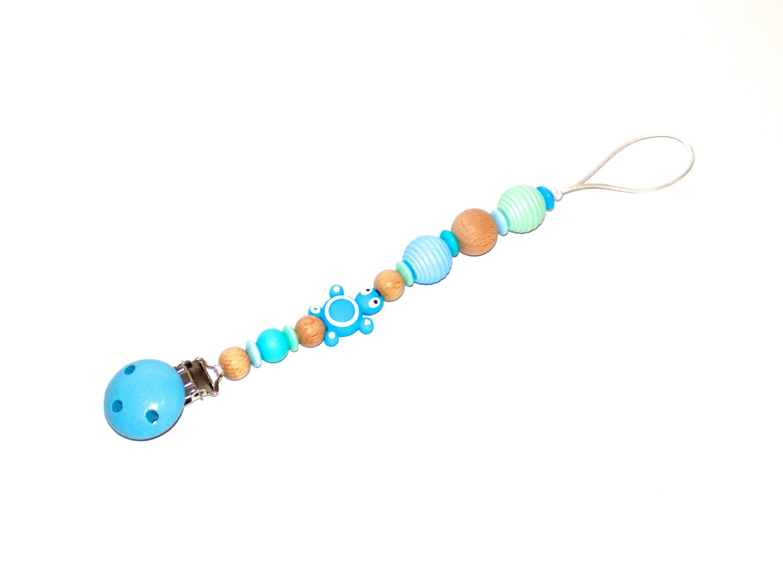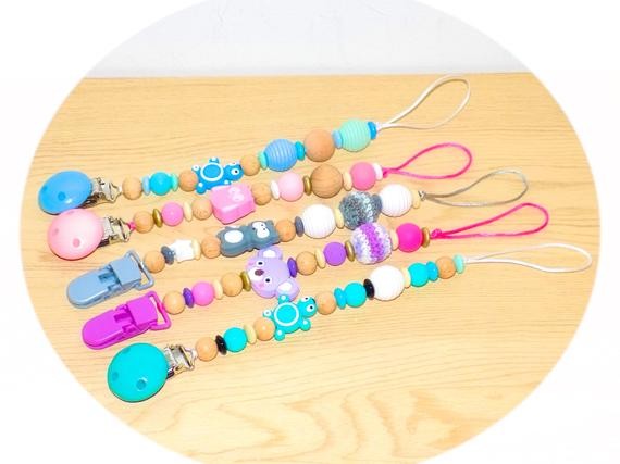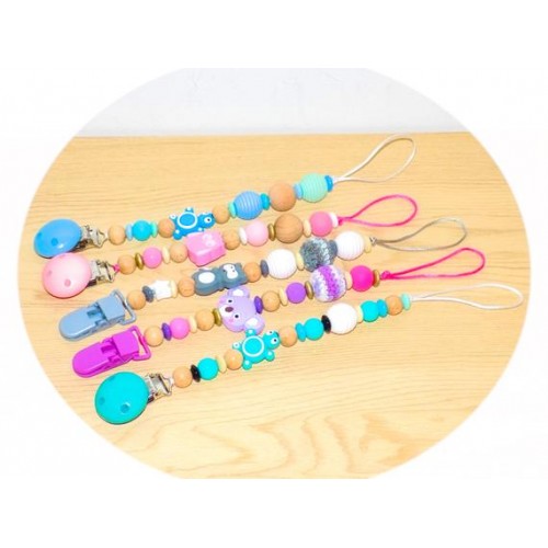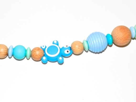 Entièrement fait à la main avec des perles en bois et en silicone alimentaire.