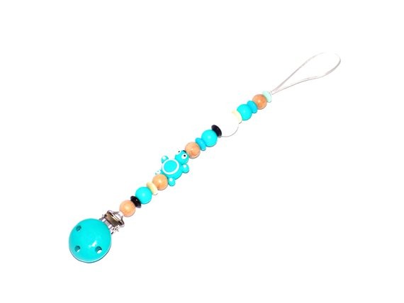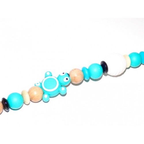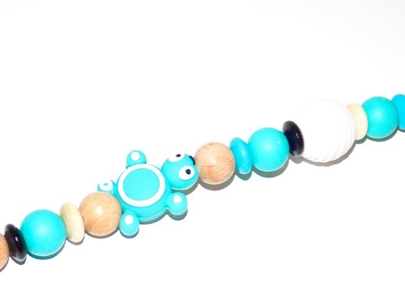 Entièrement fait à la main avec des perles en bois et en silicone alimentaire.