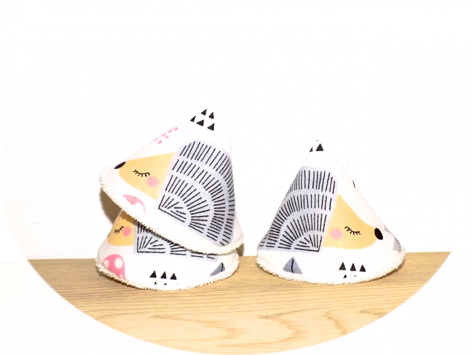 Lot de trois pare-pipi lavables au motif hérisson ( Coton imprimé et éponge naturelle de bambou, une éponge fine, souple et extra douce, idéale pour les articles de puériculture. Son séchage est rapide, elle est également très absorbante et garde sa souplesse même après divers lavages --> origine Europe et certifiée Oeko Tex).