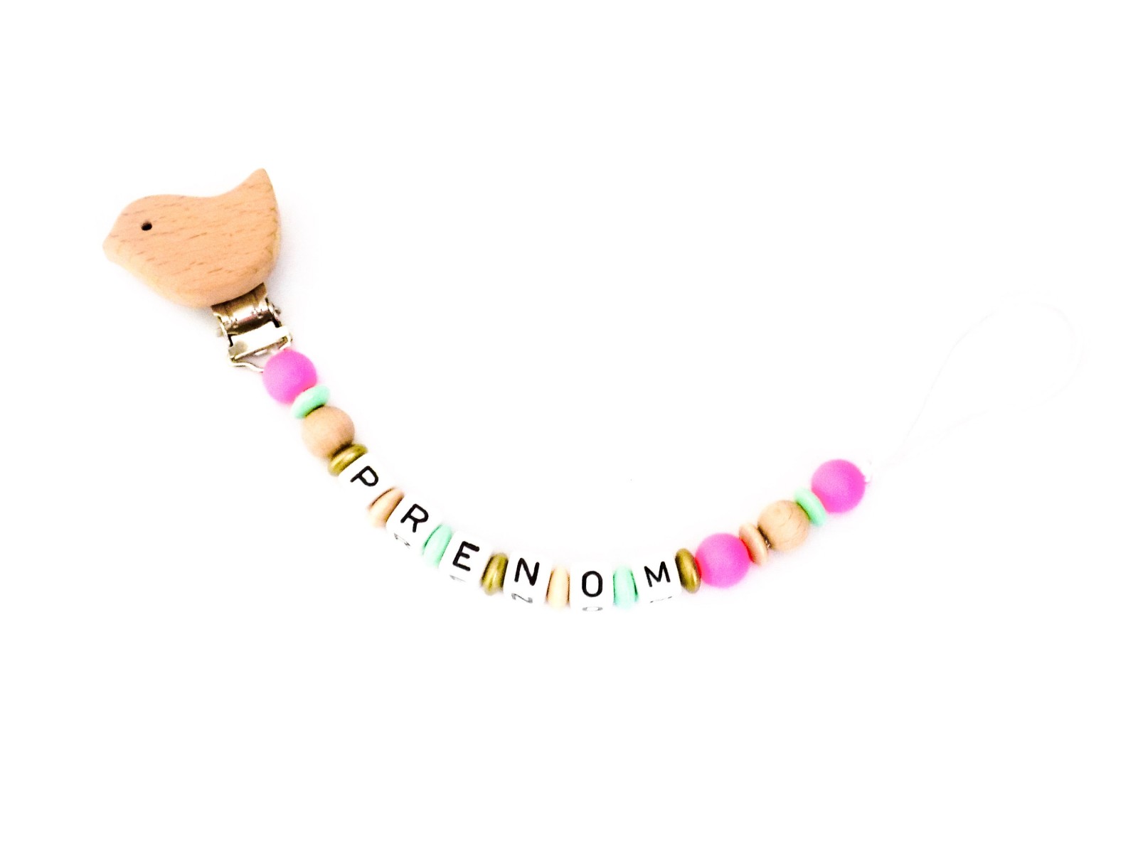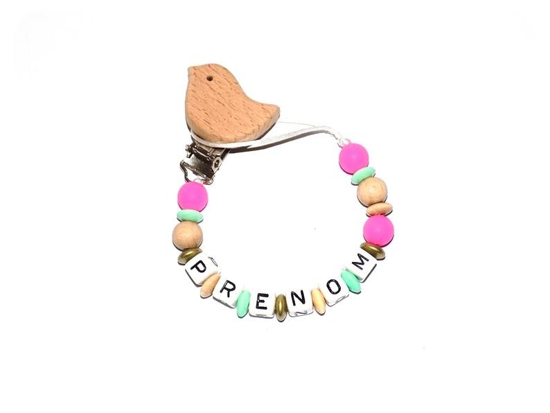 Entièrement fait à la main avec des perles en bois et en silicone alimentaire.