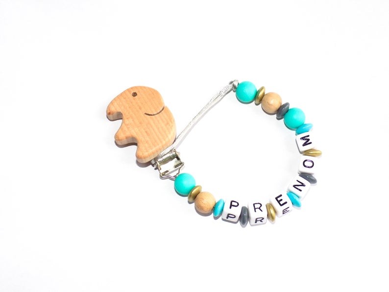 Entièrement fait à la main avec des perles en bois et en silicone alimentaire.