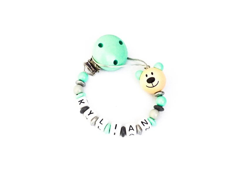 Entièrement fait à la main avec des perles en bois et en silicone alimentaire.