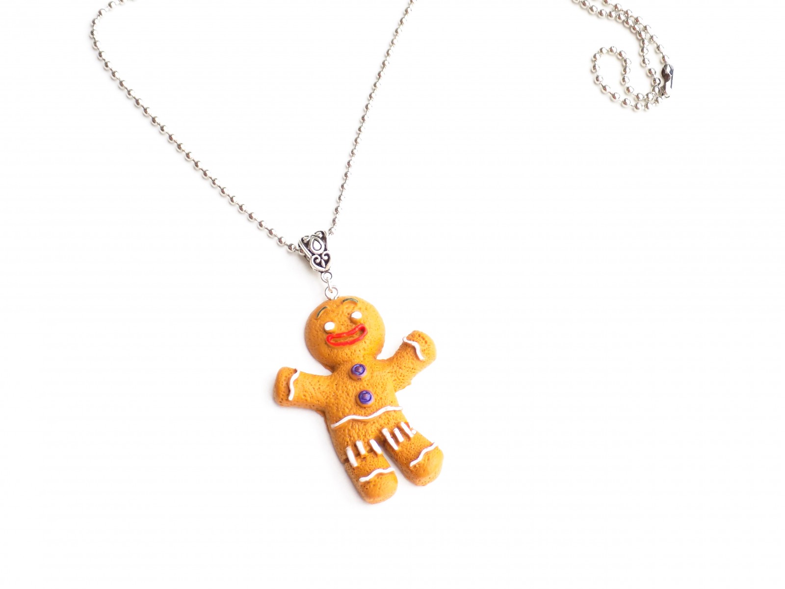 Adorable collier petit biscuit gingerbread confectionné en pâte polymère.